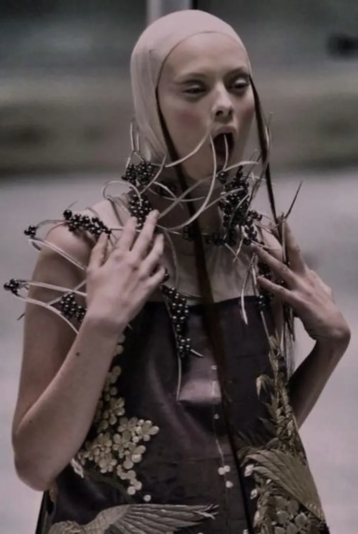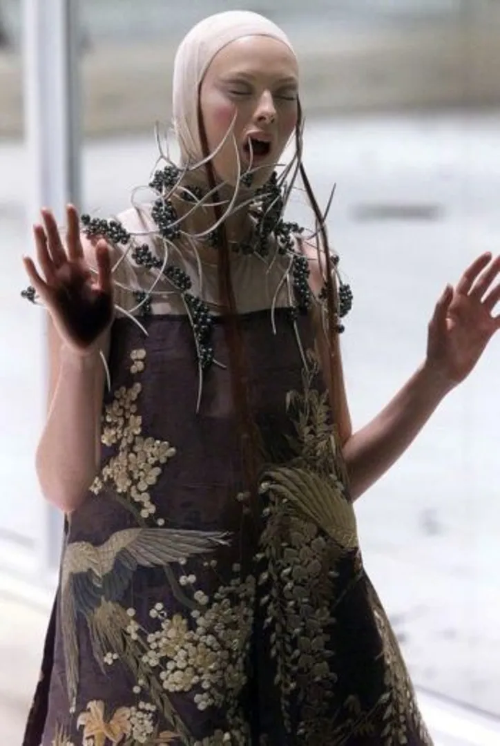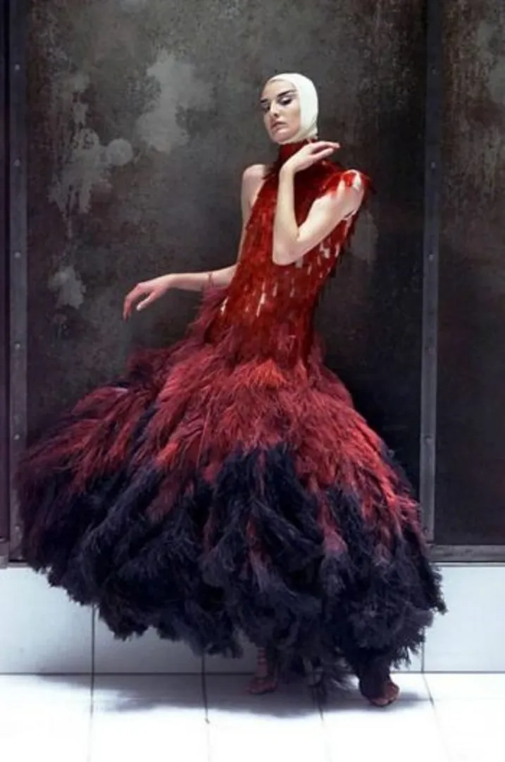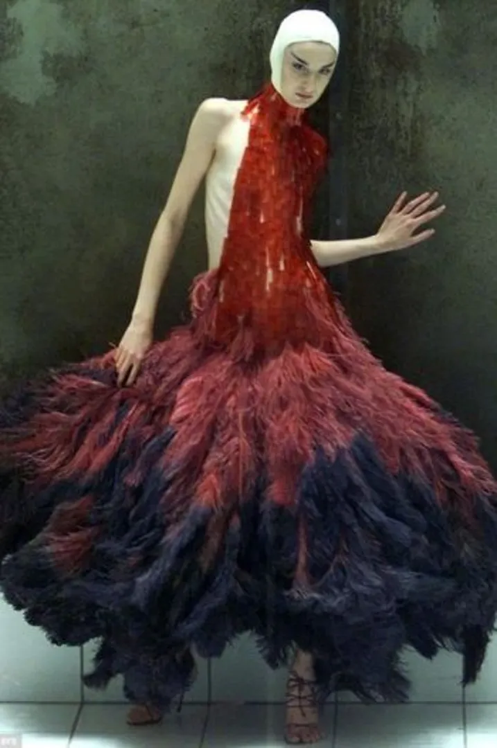 Никто уже не удивлялся, увидев на моделях копыта вместо каблуков или перья вместо рук, из-за его любви к птицам. Также совершенно нормальными выглядели платья в крови или костюмы из пищевой пленки. Каждый показ напоминал провокационный спектакль, где каждая модель играет свою роль.