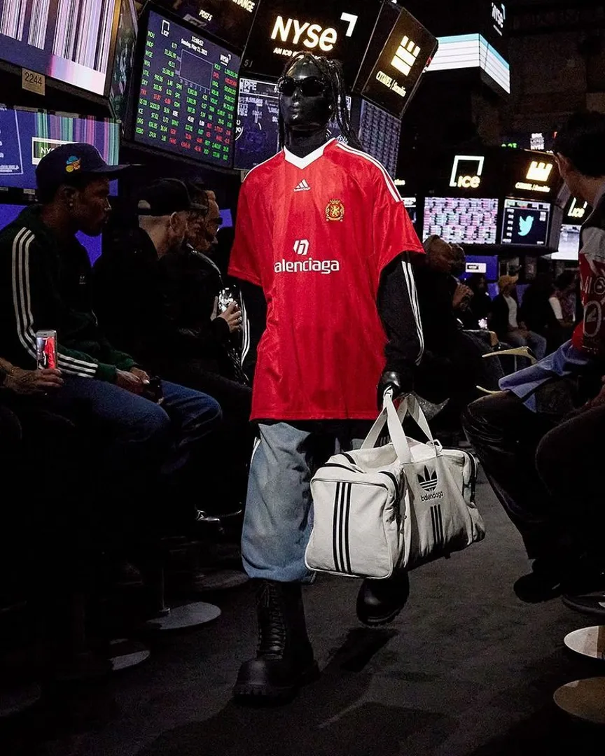 Что касается коммерческой стороны: то уже можно приобретать вещи из второй части шоу, совместной работы Balenciaga и Adidas, состоящей из футболок больших размеров, футбольных маек, джинсовых шорт и спортивных курток, украшенных тремя полосками. Печально известные кроссовки Triple-S также вернулись и теперь, похоже, поглотили пару кроссовок Adidas Samba.