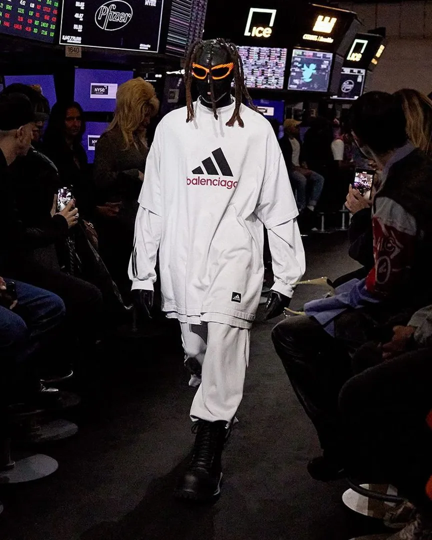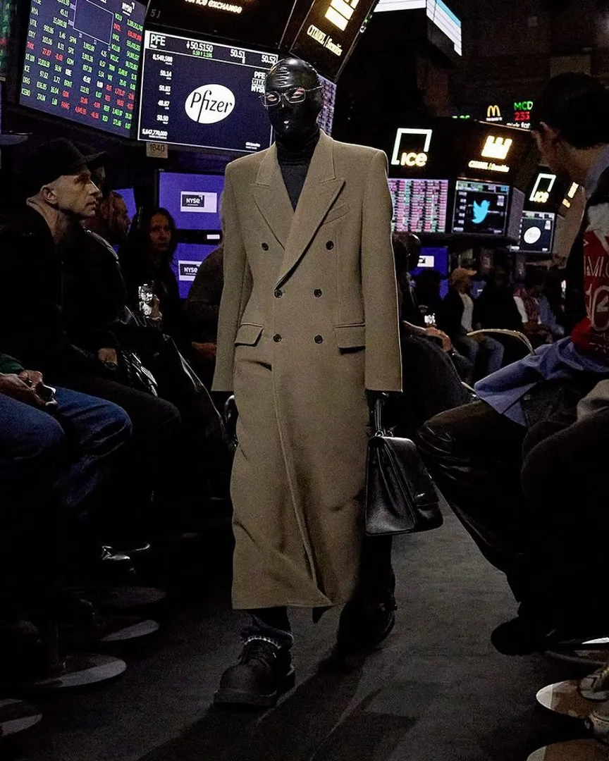 Именно поэтому в воскресенье утром 22 мая Йе – американский рэпер, известный своей склонностью опустошать целые магазины одежды Balenciaga за один подход – прошёл через весь торговый зал Нью-Йоркской фондовой биржи, с целью посетить показ бренда Весна ’23.
