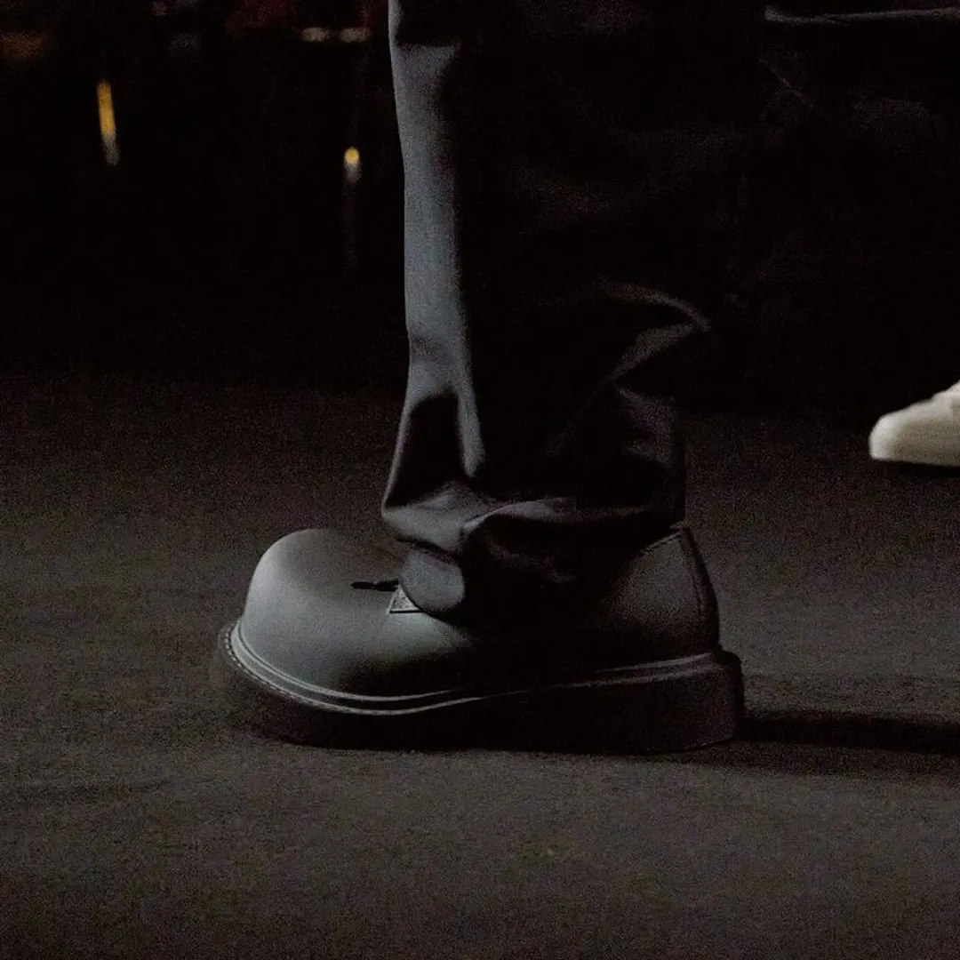 Чтобы никто не подумал, что Демна потерял свою провокационную сторону, многие модели были одеты в клоунские ботинки, сделанные по одному шаблону. Настолько огромные, что затмили даже самые большие садовые ботинки Йе. (Йе, конечно, пришёл в новых.) А потом были немного вызывающие латексные купальники. Помимо того, что идея одежды как фетиша, воплотилась в извращенные маски, одну из которых за кулисами надел сам Демна, они «помогли мне со стилем коллекции, который в противном случае я бы счёл слишком классическим», – заявил он. Миссия выполнена.