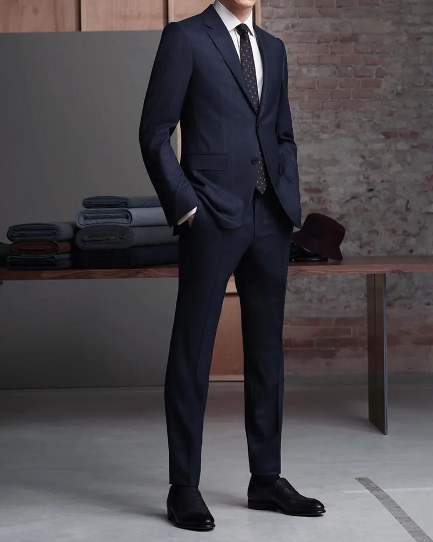 Если вам нужен костюм, который можно носить как днем, так и в теплое время года, модель Khaki Linen Suit считается абсолютным фаворитом. Изготовленный из 54% шерсти и 46% льна, этот светлый костюм позволит вам выглядеть свежо, даже в жаркие дни, а светлые, земляные тона костюма выглядят великолепно в паре с хрустящей белой рубашкой на пуговицах и коричневыми кожаными лоферами или оксфордами.