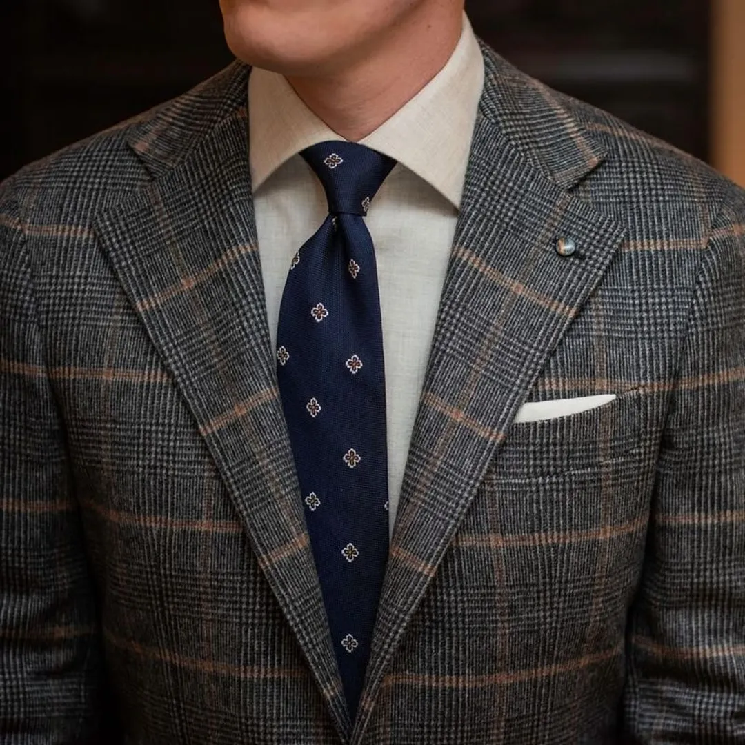 Чтобы костюм не был скучным, попробуйте серый вариант из шерстяной фланели с клетчатым рисунком, привлекающий внимание и являющийся уникальным, но не перегруженным – идеальный выбор для демонстрации вашего индивидуального стиля. Наденьте пару коричневых кожаных оксфордов или брогов и серую, белую или черную рубашку, и вы получите один из самых крутых формальных образов.