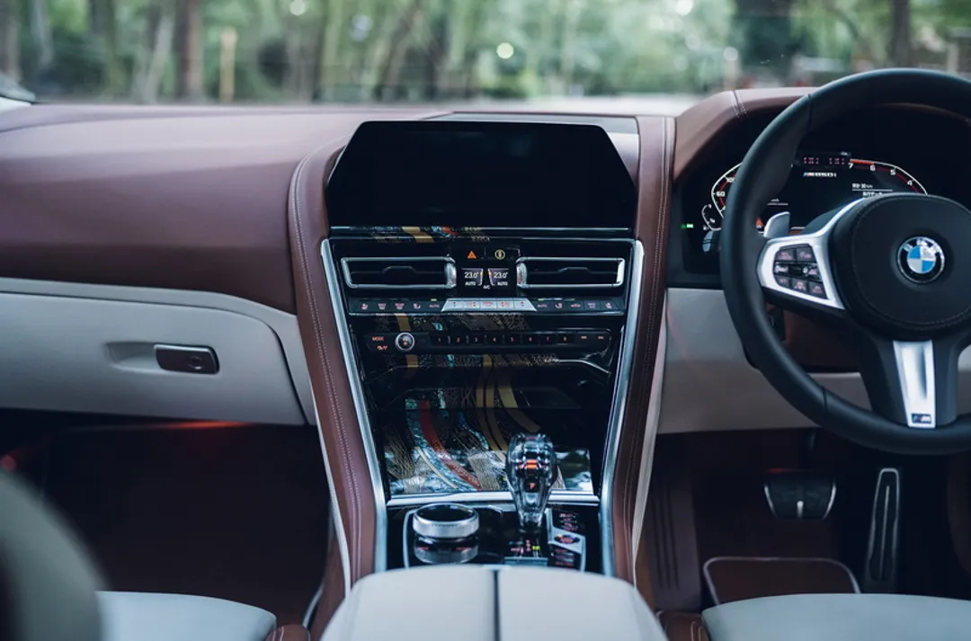 Благодаря дополнительным функциям, таким как панорамный люк на крыше, двухцветная обивка из кожи и тканевые налокотники с отделкой из замши и шелка, BMW 8 серии Gran Coupe Kyoto Edition не похож на своего серийного брата, особенно тиснением на средних стойках и 20-дюймовых многоспицевых дисках для колес.