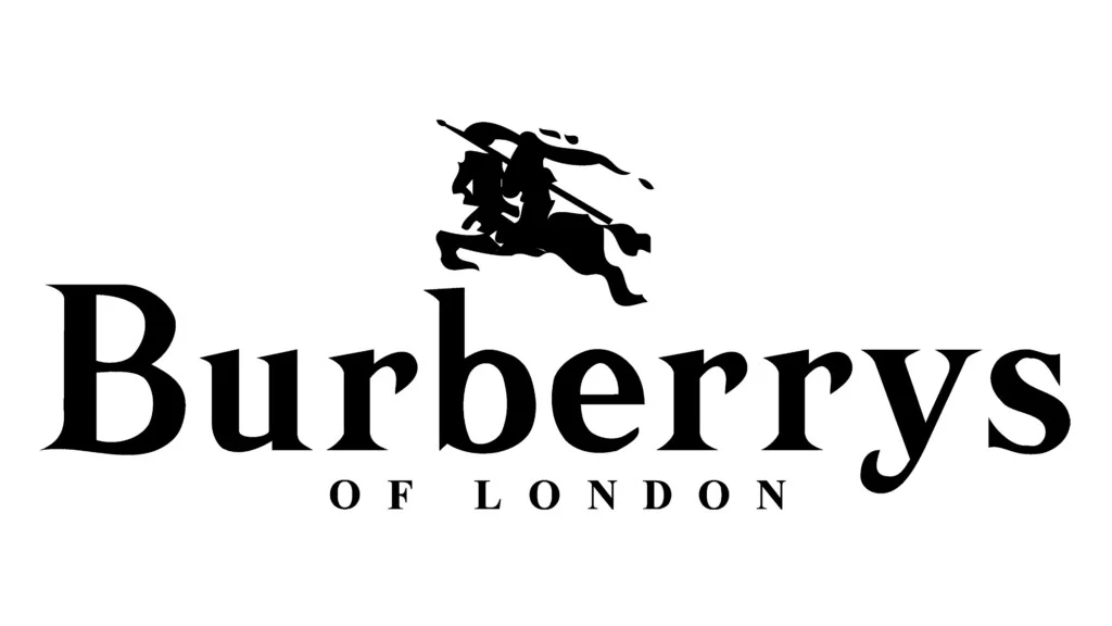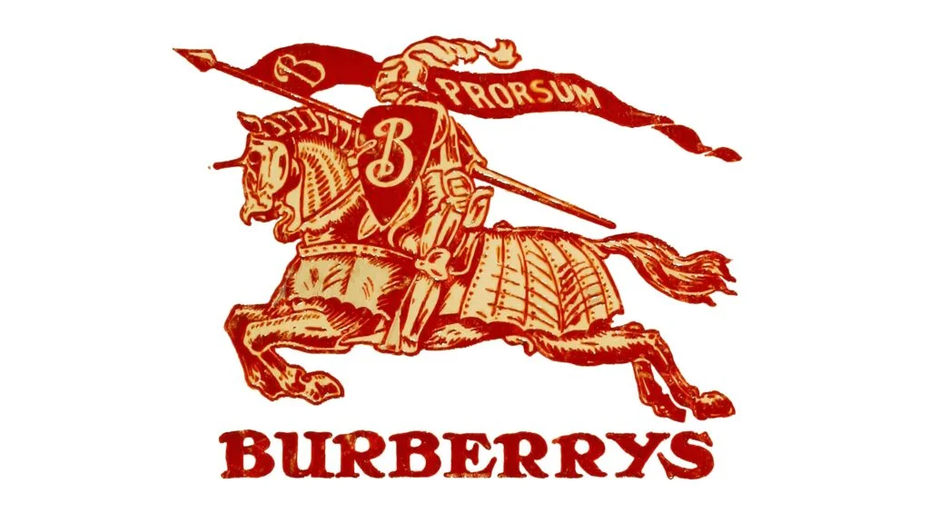 Оригинальный логотип Burberry, появившийся в начале XX века, был выдержан в теплой бордовой цветовой гамме и изображал рыцаря на коне. В руках рыцарь держал щит с изящной буквой «B» и длинный узкий флаг с надписью «Prorsum». Эмблема сопровождалась жирными заглавными буквами причудливого рукописного шрифта.