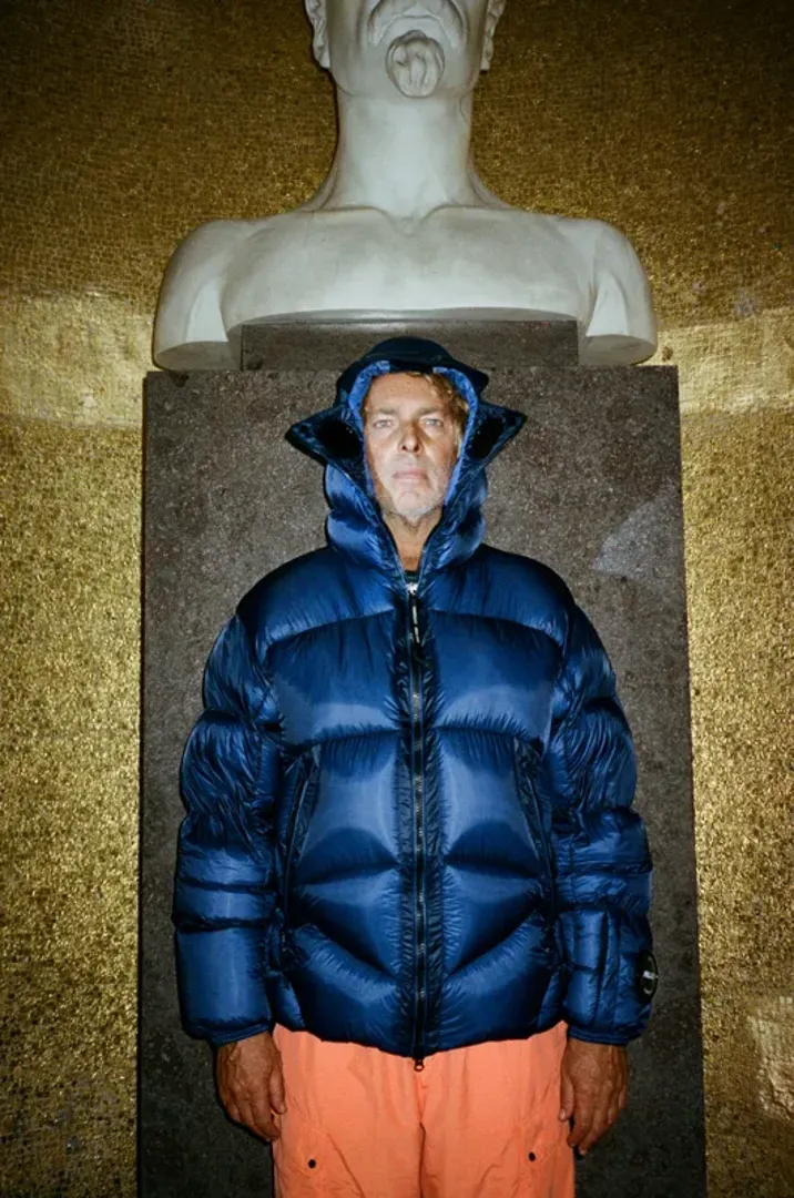 Наконец, куртка Explorer Jacket, еще одна икона каталога C.P. Company, была воспроизведена в D.D. Shell Rip-Stop, более тонком нейлоне без покрытия, который в сочетании с процессом прямого набивания пухом придает одежде большую мягкость и более нюансированный эффект света/темноты. В коллекцию также вошла небольшая серия аксессуаров — шарф D.D. Shell с пуховой подкладкой и бейсболка с наушниками и линзами Goggle на спине, а также одежда, предназначенная для повседневной носки, от брюк карго из нейлона до хлопковой флисовой толстовки, футболок с короткими рукавами с графикой, идентифицирующей оба бренда, и шерстяного джемпера с вырезом.