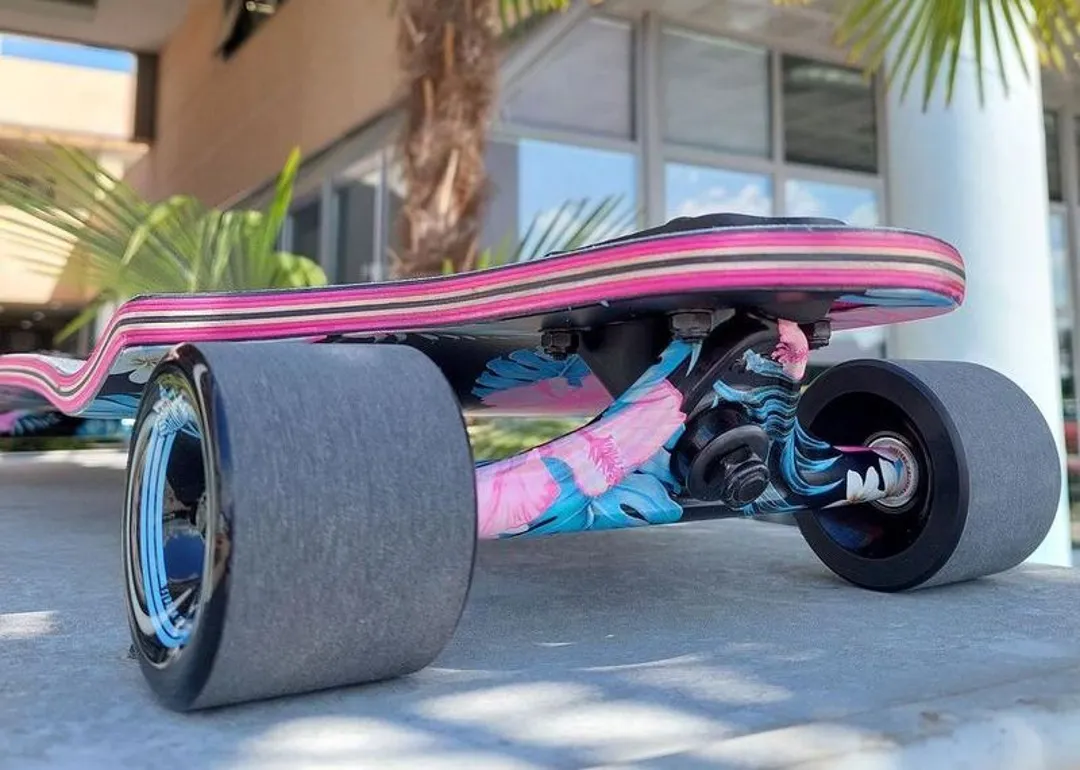 Большие и мягкие колеса на лонгбордах обеспечивают большую скорость и стабильность практически на всех поверхностях, выбираемые райдером. Они также амортизируют небольшие препятствия на дороге, такие как камешки, ветки и трещины, обеспечивая тем самым более плавную езду.
