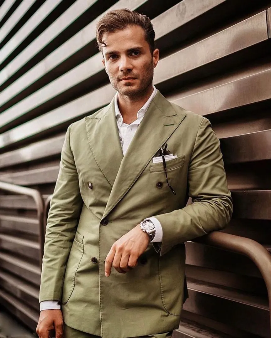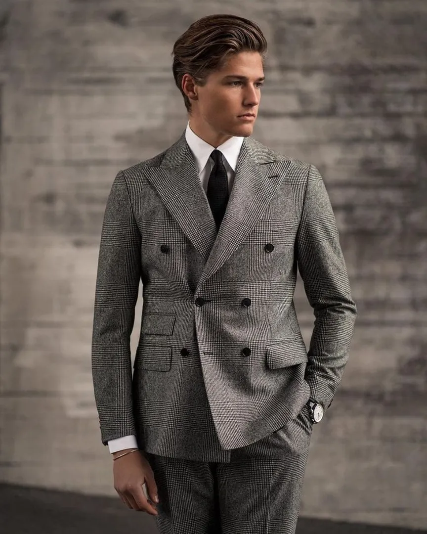 Хотя этот тип костюма был на пике популярности в 1980-х годах, в последние годы он снова стал модным фаворитом. Чтобы двубортный костюм сидел правильно, обратите особое внимание на грудь и плечи — пиджак не должен быть неудобным или тесным.
