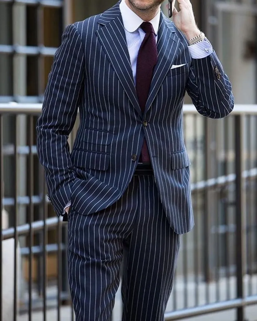 Если вы привыкли к облегающим костюмам, но хотите попробовать что-то еще более уникальное, подумайте о костюме в тонкую полоску. Тонкие полоски — это популярный рисунок, потому что он не только известен своим эффектом, зрительно делающим фигуру более стройной, но и способен создавать иллюзию более высокого роста. Классический костюм в тонкую полоску стал модным с 19-го века, но в США он стали популярен только в 20-ом веке.