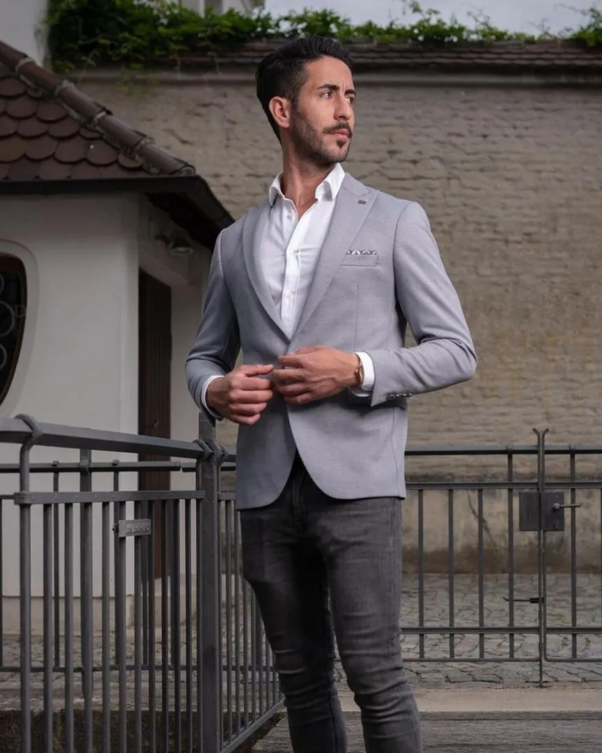 Одни мужчины предпочитают одежду свободного покроя, другие — более плотную посадку. Это дело вкуса. Если вы ищете облегающий пиджак или блейзер, важно либо сшить его на заказ, либо купить готовый, но сшитый для плотной посадки, поскольку существует тонкая грань между «плотно сидит» и «не подходит».