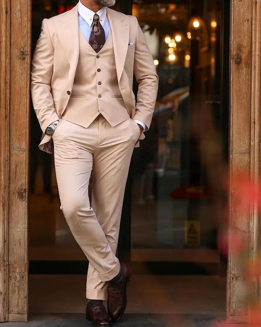 Обычными характеристиками классического мужского костюма являются цвет, который легко сочетается с другими цветами, наличие лацканов, манжет, двух шлиц, передних карманов и хорошо подогнанных плеч. И последнее замечание — для оптимального результата рекомендуется, чтобы костюм подогнал по фигуре портной. Только профессионал сделает так, чтобы он сидел как можно лучше.