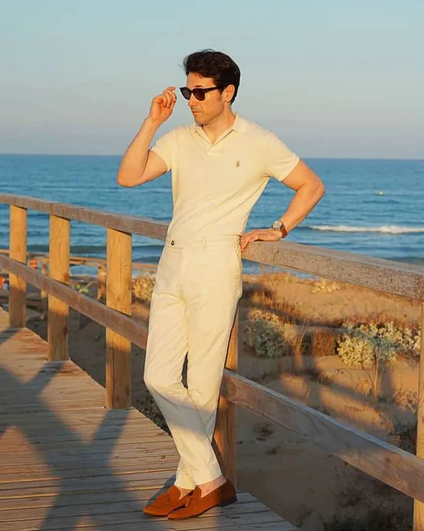Поло можно носить не только для вида, по пути в теннисный клуб вашего дяди! Ральф Лорен или нет, но рубашки-поло хорошо подходят для путешествий. Прочный, но мягкий материал загадочным образом не оставляет складок и создает «изысканную, но повседневную» атмосферу, которую мы стремимся создать в этой коллекции нарядов для круизных путешествий. Заправьте футболку-поло за пояс, чтобы завершить образ. Если вдруг вы не хотите утяжелять ручную кладь, знайте, рубашка-поло отлично смотрится даже без ремня.