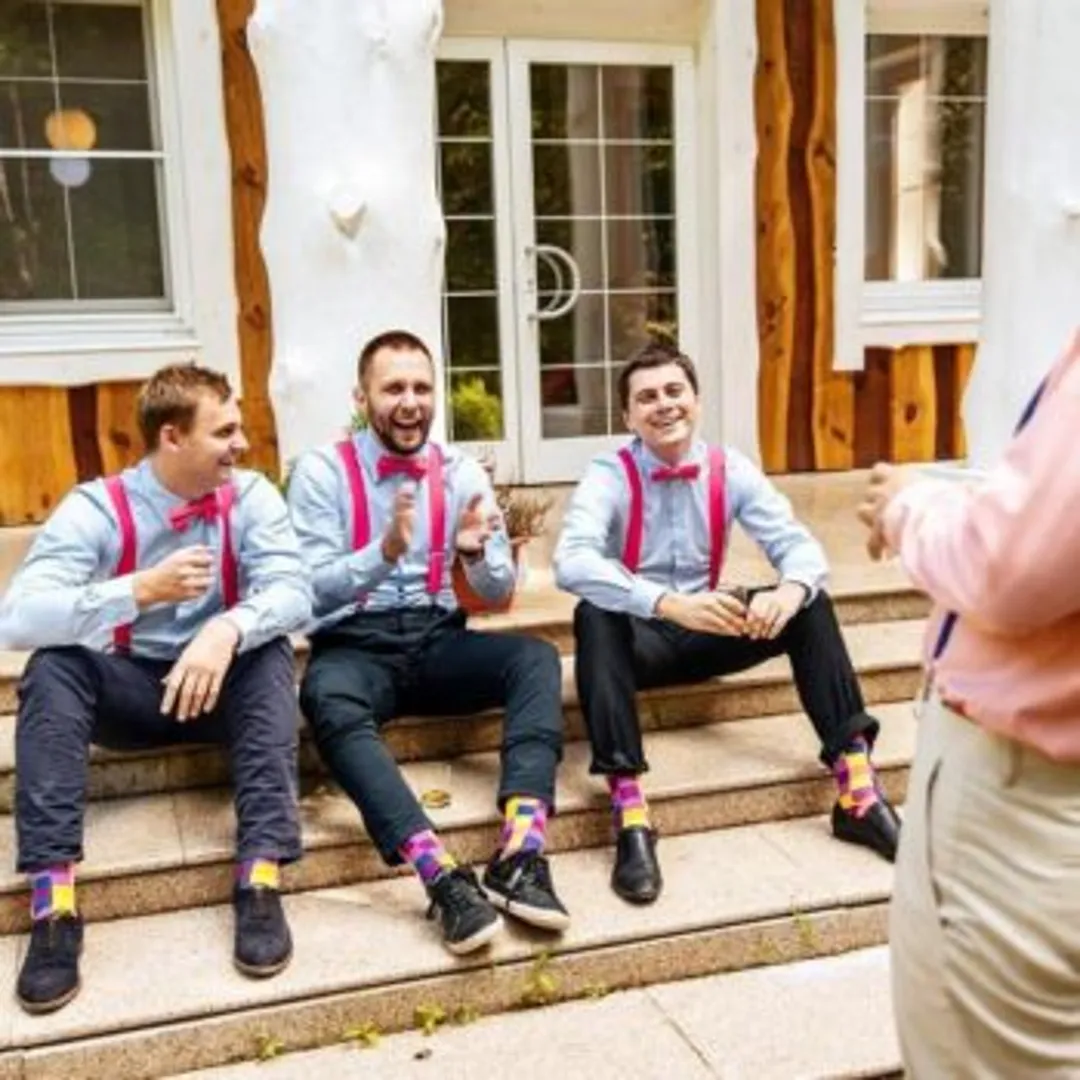 Для свадьбы вне города используйте отдельные элементы, а не цельный костюм. Однако не стоит слишком сильно нарушать границы. Выберите лёгкий пиджак, брюки с рубашкой и галстуком. Также вы можете надеть жилет, соответствующий по цвету брюкам или пиджаку, как дополнительный элемент. Просто помните: хоть место проведения находится за городом, но это точно будет не пруд с жабами.
