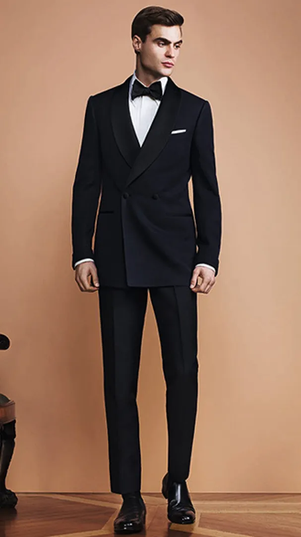 С точки зрения пошива, двубортный пиджак – отличная альтернатива повседневным жакетам, которая уместно вписывается в дресс-код современной свадьбы. Замените шерсть на более роскошный мохер или менее душный лён. Выбирайте ткань в зависимости от температуры и атмосферы свадьбы.