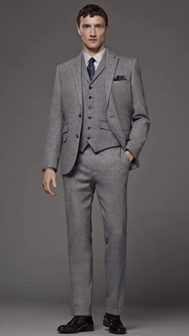 Многие предпочитают черное пальто в «ёлочку» и брюки с узором «собачий зуб» в сочетании с двубортным нежно-розовым жилетом. Хорошо продумайте ваш наряд, чтобы не выглядеть нелепо. Можно разбавить наряд светлой или небесно-голубой рубашкой и заменить броги на оксфорды.