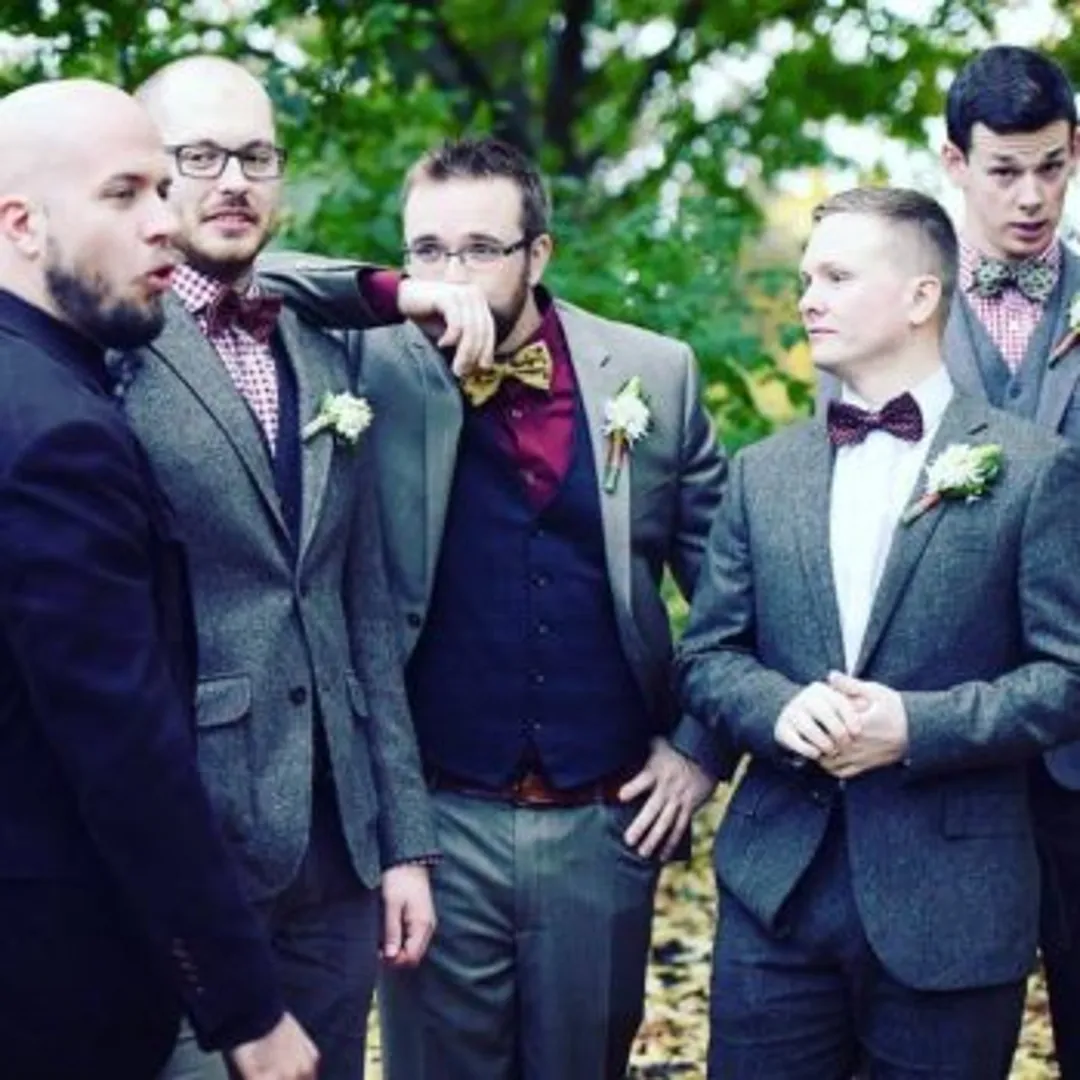 Абсолютно универсальный наряд. Для большинства свадеб, костюм-двойка будет соответствовать требованиям дресс-кода, его можно надевать ни один раз, при условии, что вы поменяете рубашку и аксессуары.