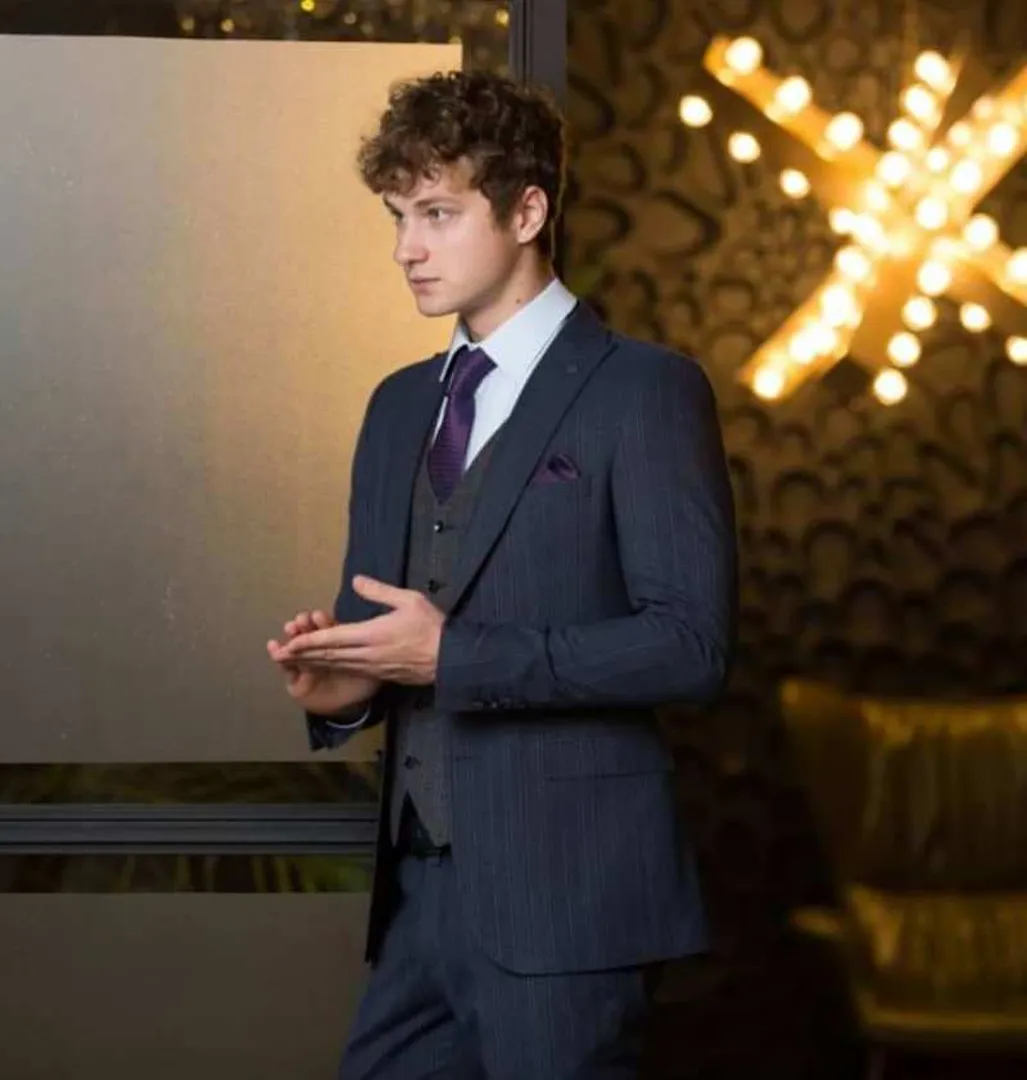 Костюмы тройка с галстуком в полоску наряду с однотонными стали классикой делового гардероба, но это не отменяет их красоты и элегантности, они могут стать отличным решением на впускной вечер. Полоски визуально «вытягивают» силуэт, делая молодого человека стройным, солидным, высоким. Используя полосатую ткань можно не заморачиваться с кроем пиджака, любой крой будет выигрышным. Костюм тройка в полоску универсален с любой точки зрения. Его можно одеть на торжество или важное собеседование.