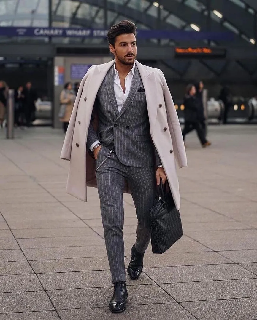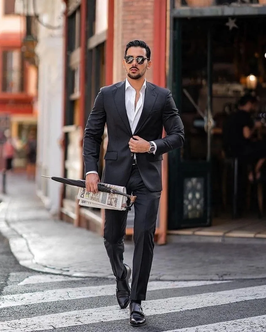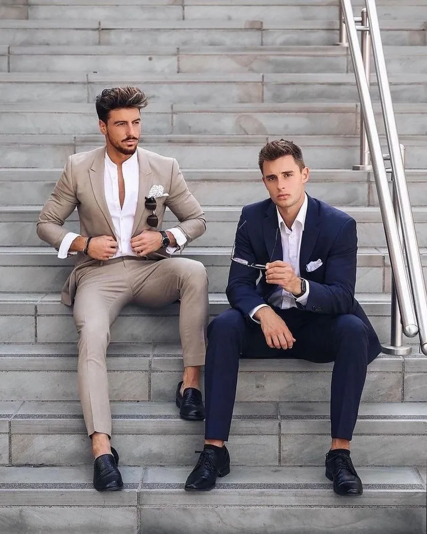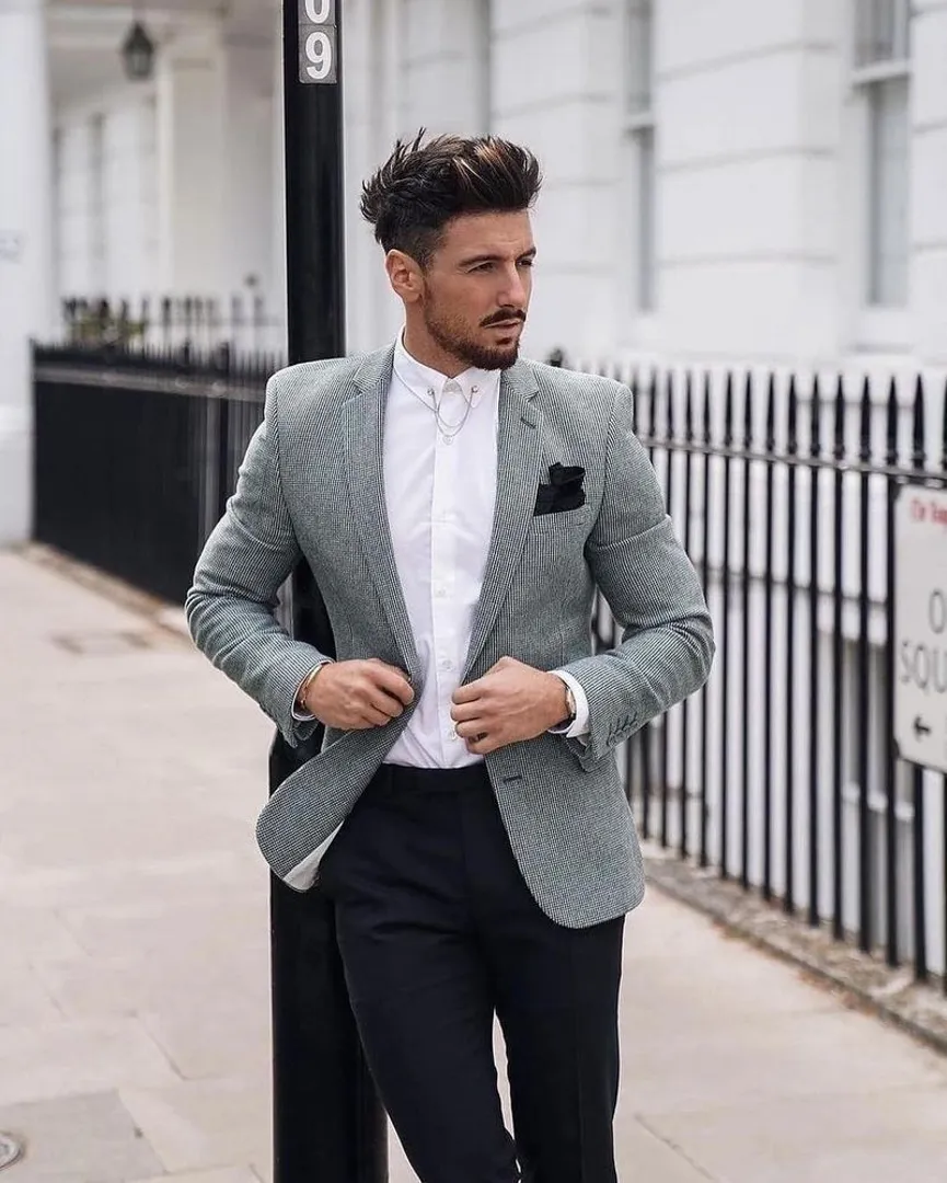 Теперь о костюмах. Каждому мужчине необходим хотя бы один костюм, подходящий для различных мероприятий, как в стиле смарт-кэжуал, так и полуофициальных, поэтому важно инвестировать в него, если вы еще этого не сделали. Помните, что костюм не является костюмом, если брюки и пиджак сшиты не из одного материала; вы никогда не должны сочетать брюки с другим пиджаком, а пиджак с другой парой брюк.