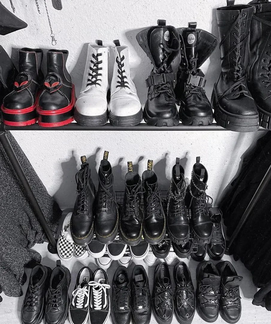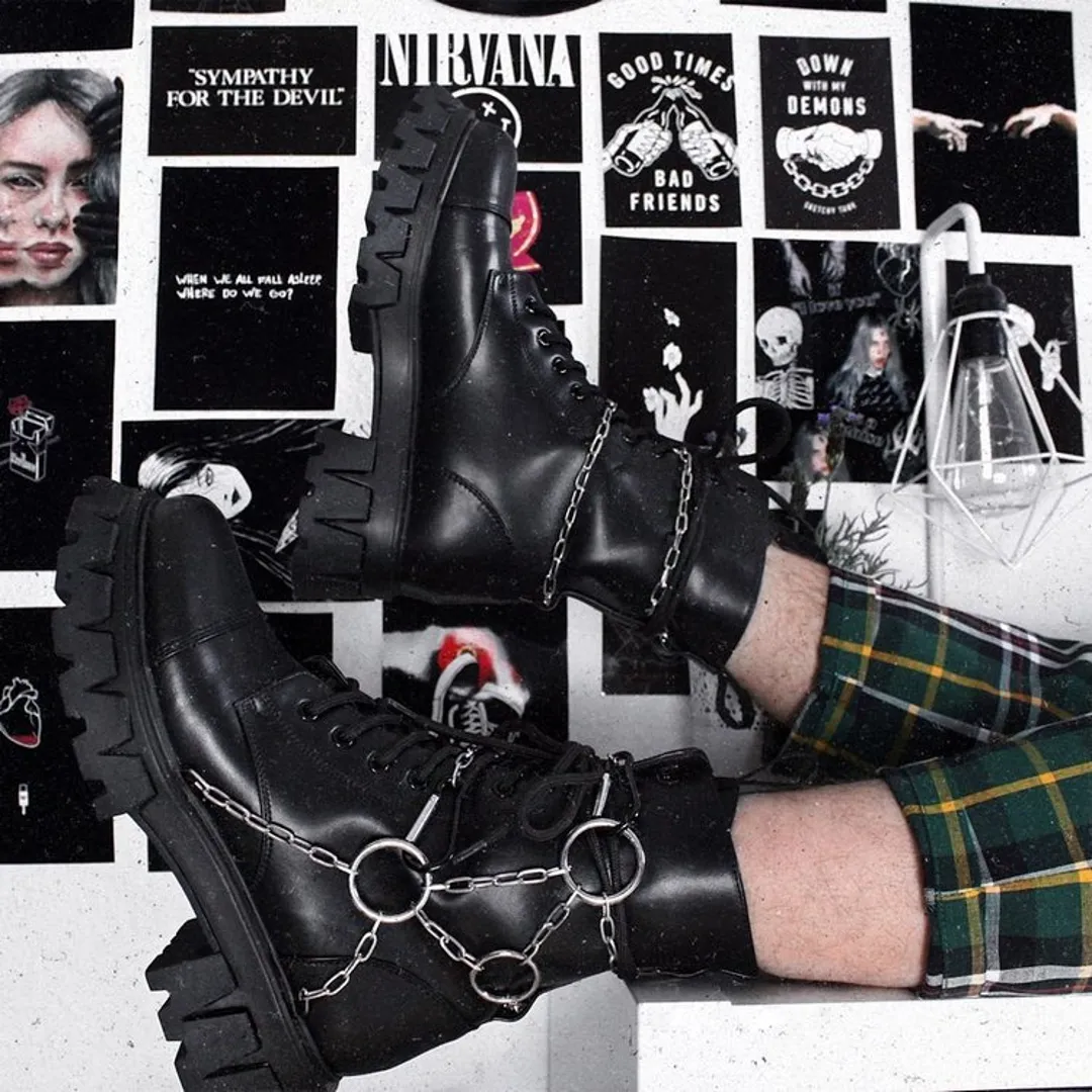 Ботинки с высоким верхом созданы для функциональности, с отличительной амортизацией подошвы, обеспечивающей большую поддержку, чем обычная модная обувь, но их элегантный блестящий внешний вид также хорошо сочетается с эстетикой панка 80-х.