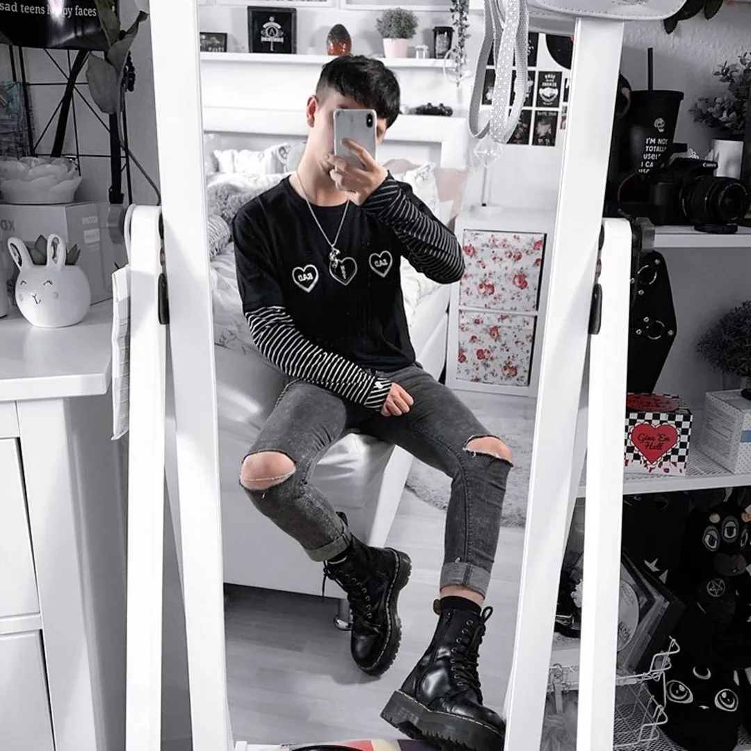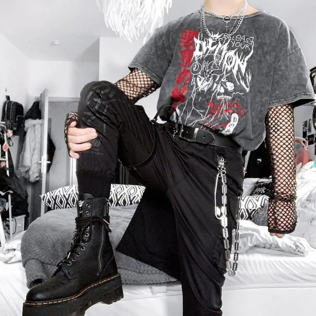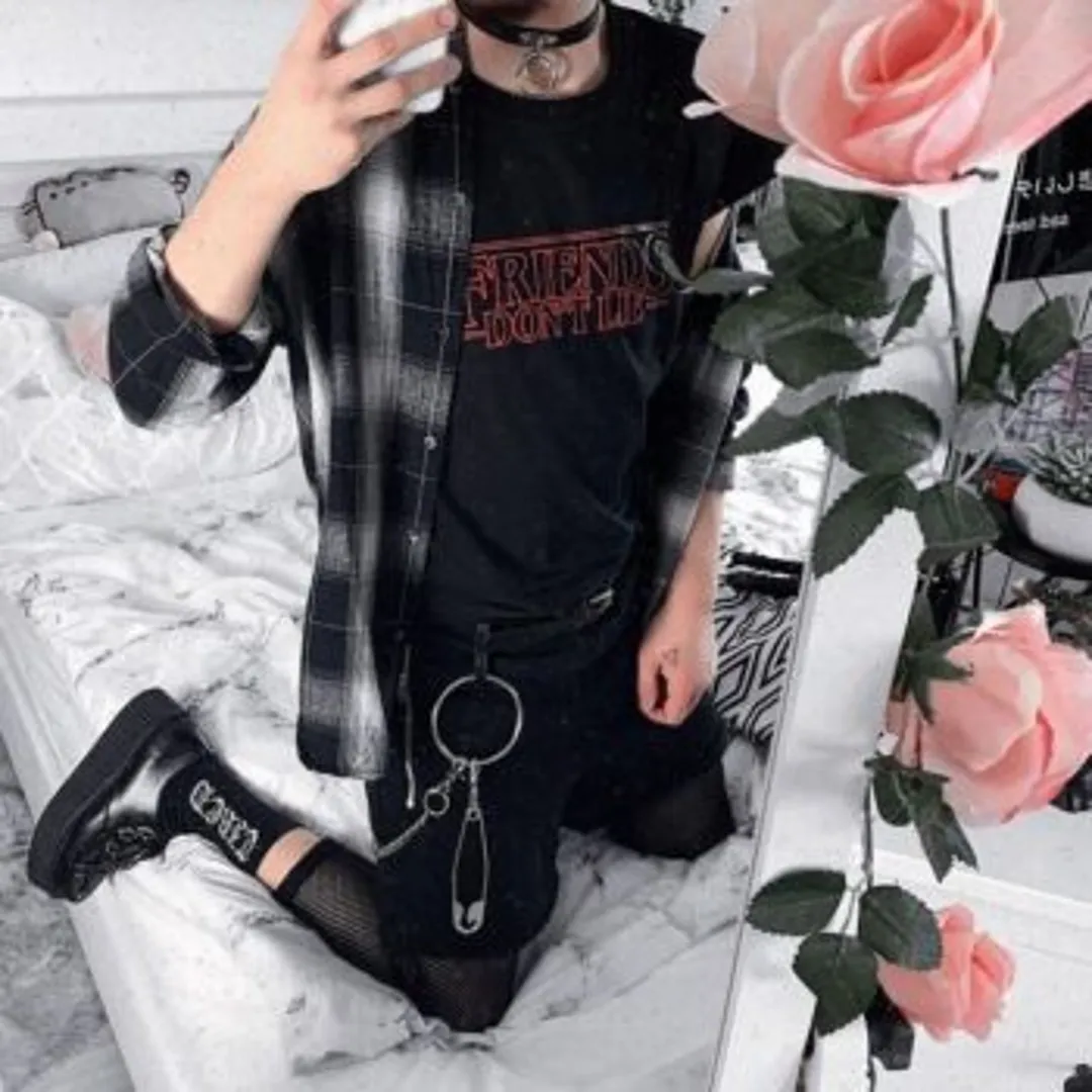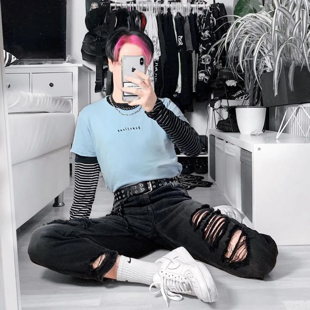 Многие элементы панк-моды кажутся очень театральными и преувеличенными, но стиль также может быть настолько простым и менее шокирующим, насколько вы захотите. Подтверждением слов будет простая пара рваных джинсов, черные армейские ботинки «берцы» и винтажная футболка с принтом музыкальной группы.
