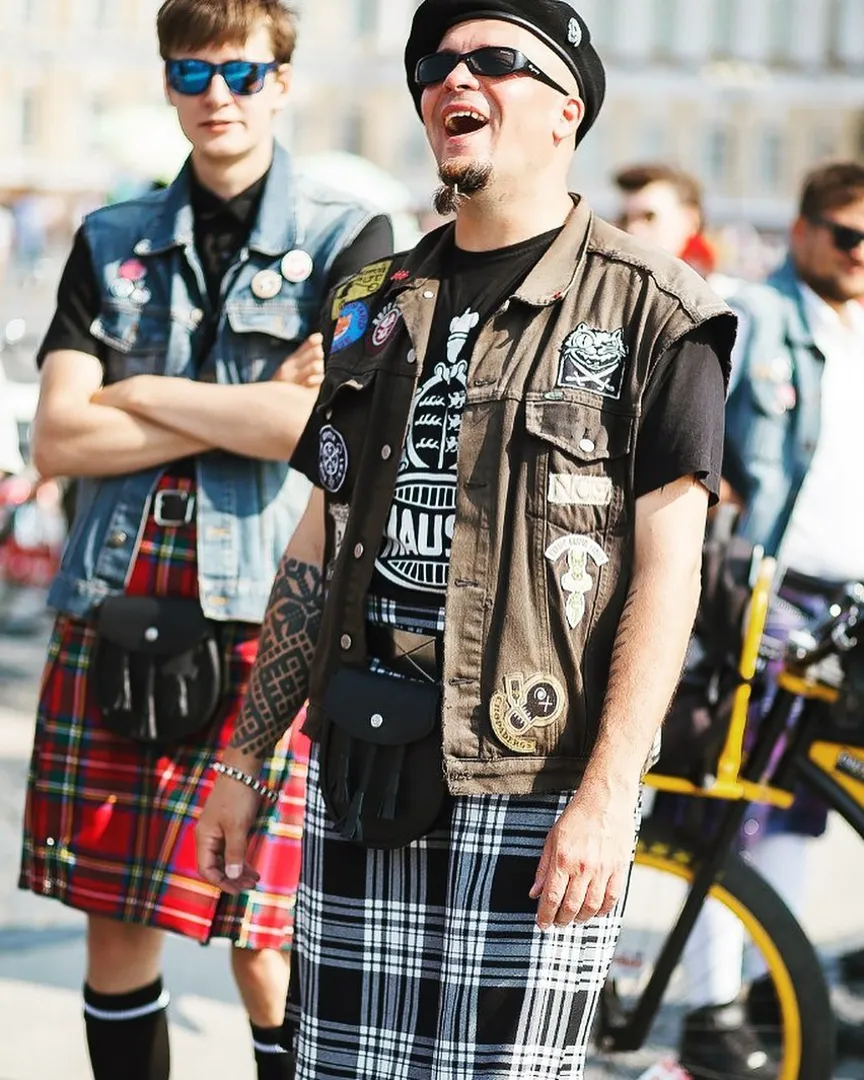 Килты, наиболее известные как официальная одежда волынщиков, также нашли свое место на панк-сцене. Одна из основных философий движения субкультуры в моде с ирокезом – это способы раздвинуть границы, и что может быть более раздвигающим границы, чем юбки для мужчин? Килт – отличный способ заявить о себе и показать, что вы не боитесь одеваться нестандартно.