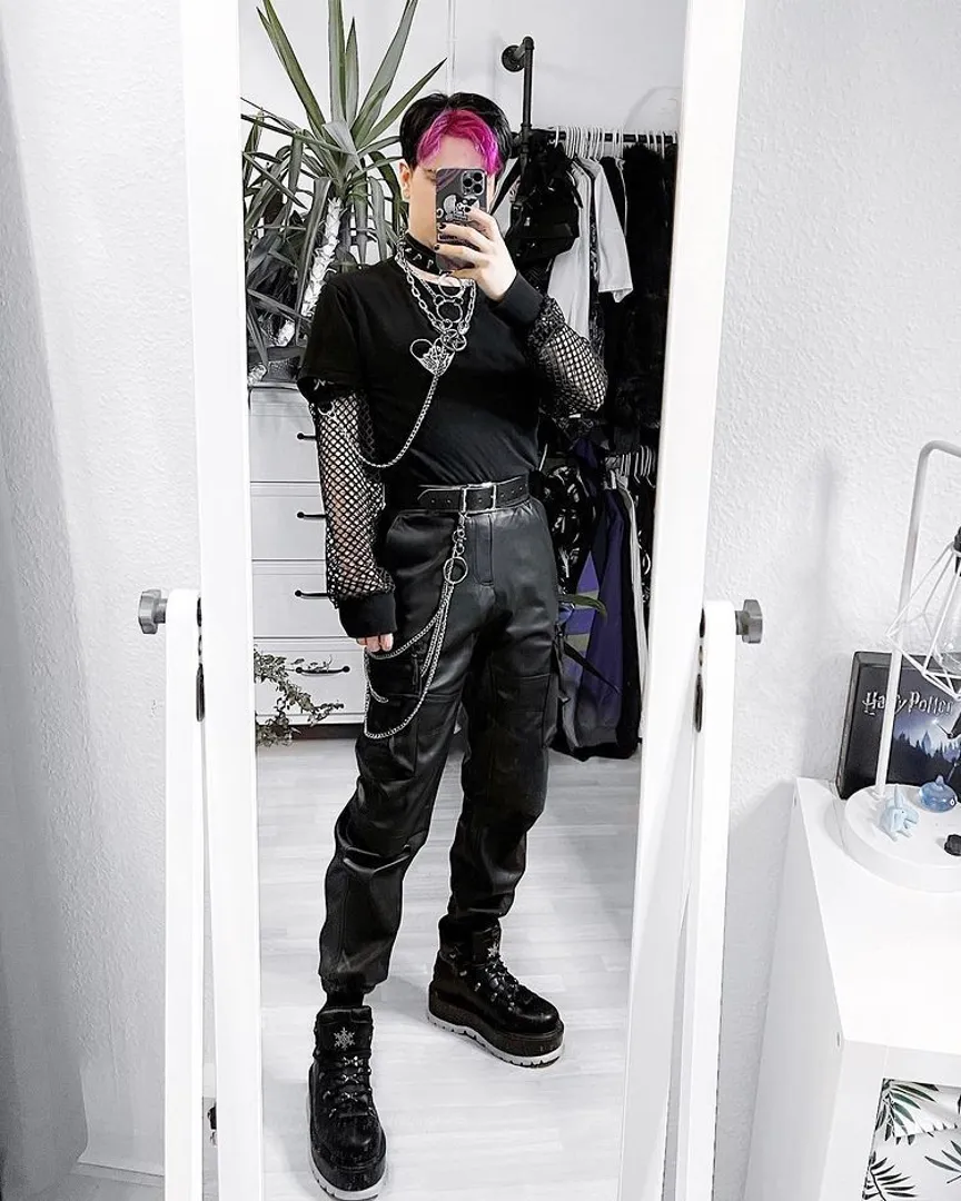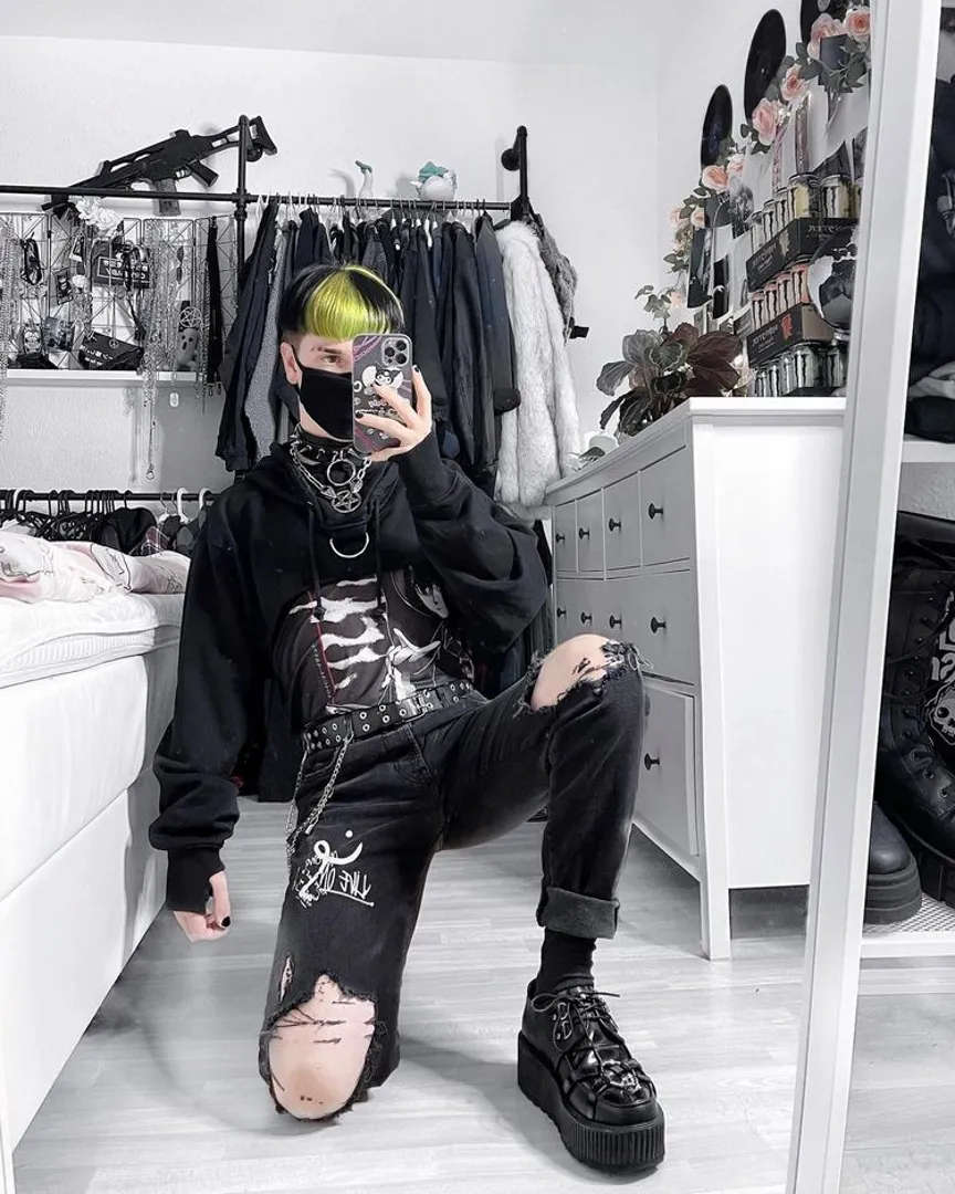Она служит не только для хирургических целей или защитой от коронавируса. Маска – отличный аксессуар, дополняющий панк-наряд. Панк-маски обычно выполнены из черной кожи, и многие из них имеют детали, такие как отверстия для пуговиц, миниатюрные шипы и заклепки. Маска отличный способ мгновенно расширить границы стиля.