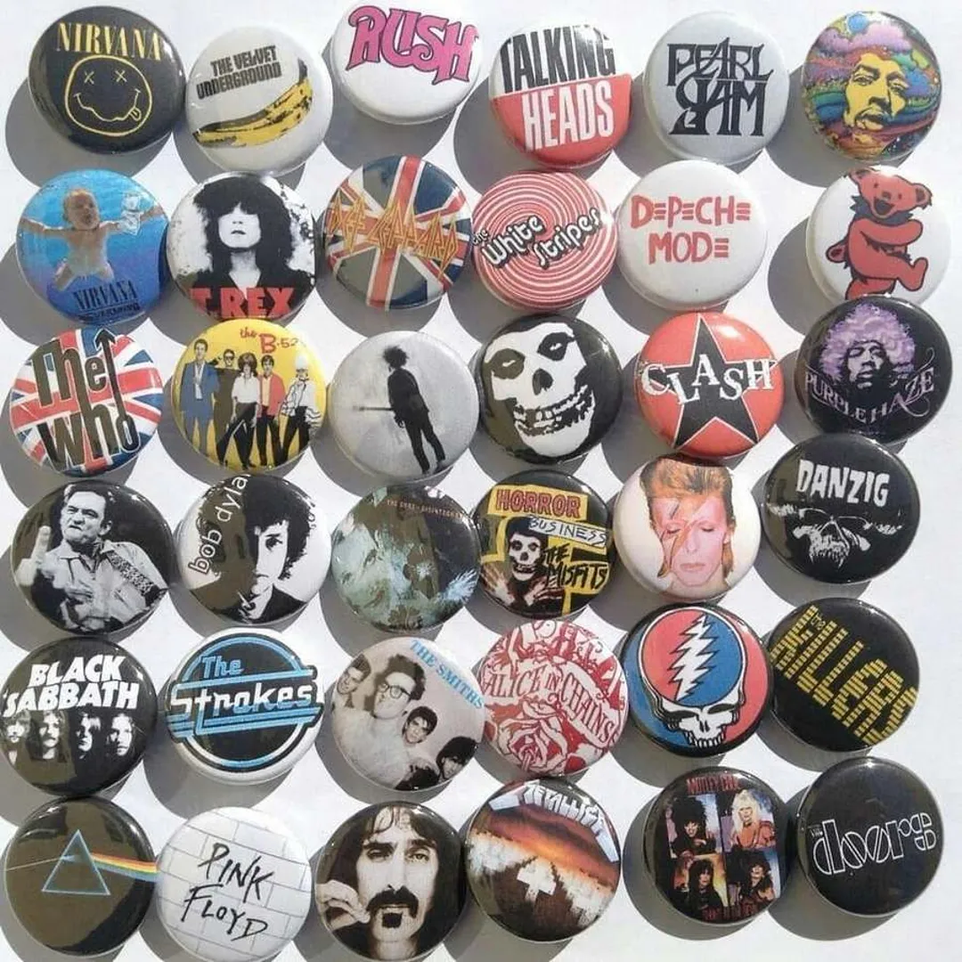 Мы уже говорили о том, что стиль панк направлен выразить себя, и большие значки – отличный способ, это сделать. Во времена зарождения стиля многие чувства, которые обычно выражались, были гневом на несправедливость общества или на «власть имущих» в целом. В комиссионных магазинах иногда можно найти винтажные значки.