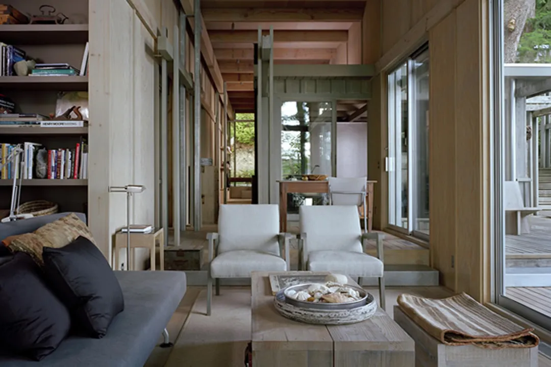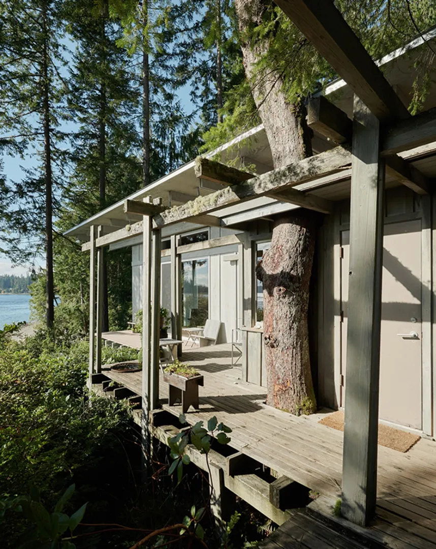 Вы найдете этот шикарный домик в Пьюджет-Саунд в штате Вашингтон, которая в 1959 году выглядела как лачуга площадью 60 кв. метров (т.е. крошечная) и с тех пор выросла до чего-то большого. Каждый раз, владелец, вместо того чтобы снести очередное препятствие для пристройки и начать все заново, вживлял «проблему» в свой проект. И сегодня дом – это праздник из стекла и деревьев, привлекающий внимание и ошеломляющий своим видом.