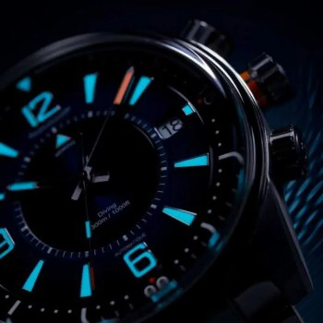 Jaeger-LeCoultre совершил еще один шаг вперед, в незаменимой вещи для любого настоящего дайвера, и использовал разные цвета, чтобы различать часовую и минутную стрелки, обеспечивая максимальную безопасность во время любого приключения на глубине. Секундная стрелка с оранжевым наконечником для видимости при дневном свете помогает избежать путаницы с другими стрелками.