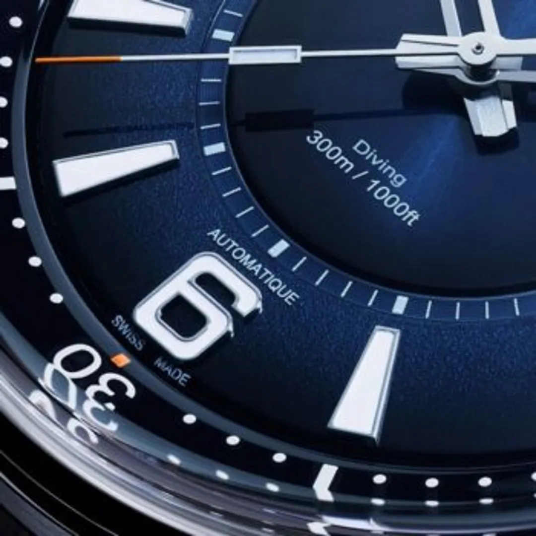 И те, и другие часы способны выдерживать глубину 300 метров (30 бар) и оснащены завинчивающимся внутренним безелем с выемками для избежания непреднамеренного действия с механизмом во время погружения. Кроме того, есть оранжевая полоска безопасности, предупреждающая дайверов, если она не закручена до конца. Оба циферблата окрашены в интенсивный синий градиентный цвет, поддерживаемые тремя концентрическими кругами – в современном дизайне циферблата Jaeger-LeCoultre Polaris.