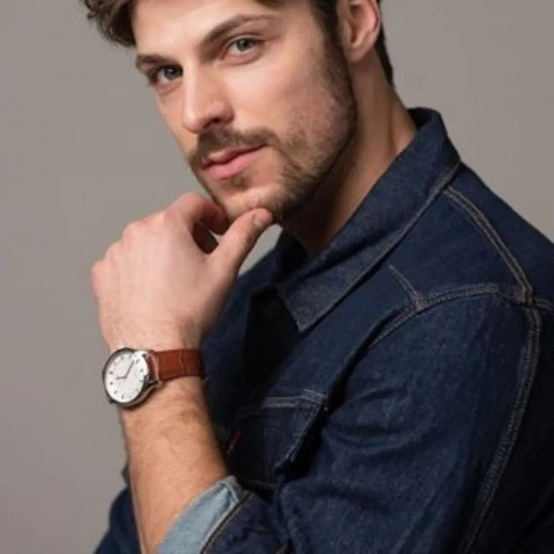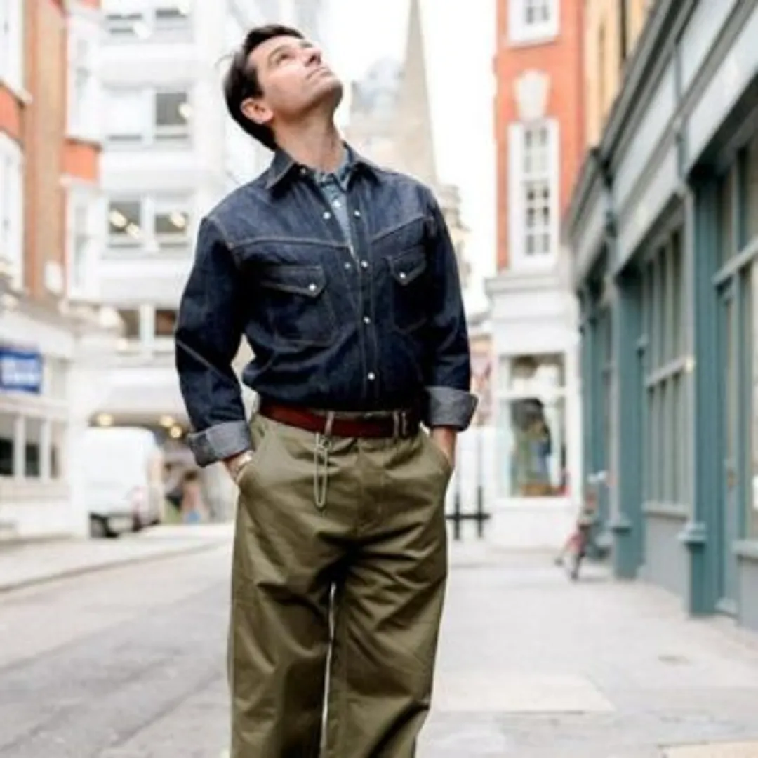 Джинсовую мужскую рубашку можно отлично сочетать с тонким свитером, пуловером или кардиганом. Если к такому луку прибавить роговые очки в стильной оправе, то можем получить новоиспеченного модного хипстера.
