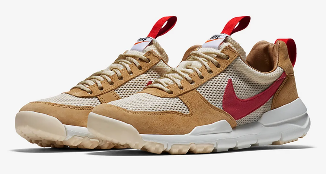 Еще в 2012 году компания Nike совместно с художником Томом Саксом создали модель кроссовок Nike Mars Yard, вдохновленную общением Сакса с учеными НАСА. В 2017 году состоялся повторный выпуск этой модели, пары которой были доступны только тем, кто прошел уникальную экспериментальную программу «Космический лагерь». В настоящее время цена кроссовок на сайтах перепродажи составляет более 3 000 долларов. Верхняя часть модели включает инновационную трикотажную сетку Warp-knit и материалы, используемые в основном в их естественном состоянии, то есть без красителей и искусственных изменений.