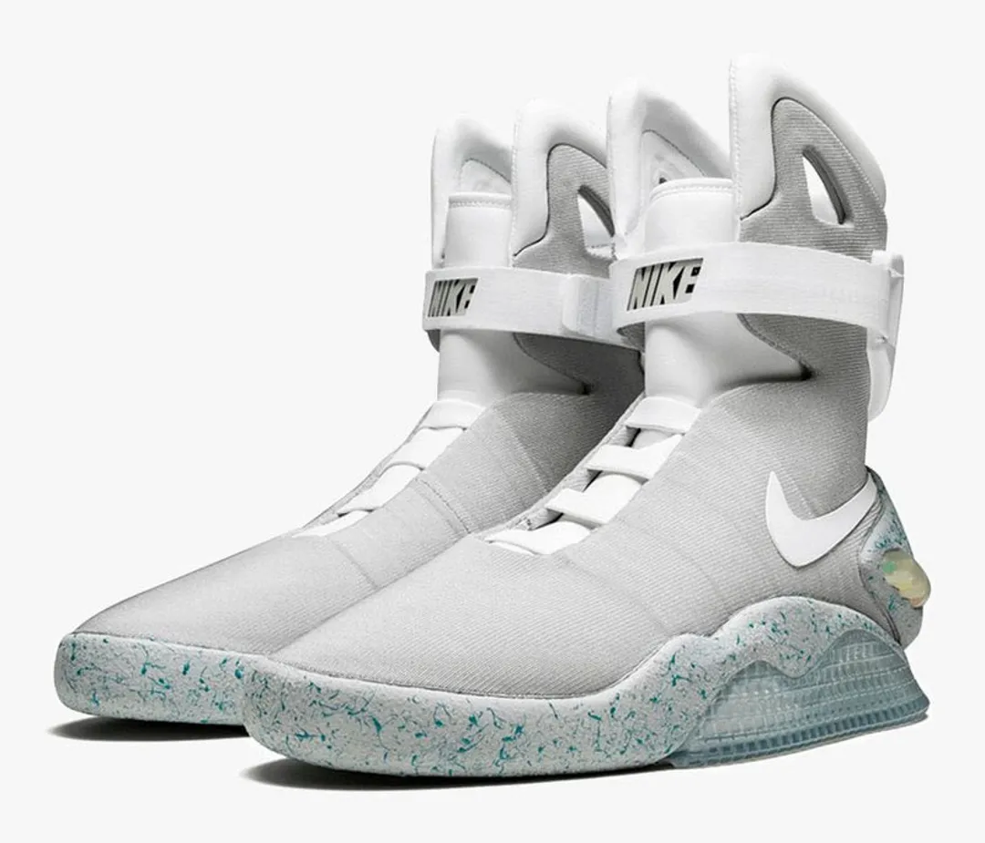 Появившись во второй части фильма «Назад в будущее», Nike Air Mag остаются одними из самых востребованных кроссовок, когда-либо выпущенных. В 2011 и 2016 годах их было выпущено ограниченное количество, тогда они были проданы на аукционе, чтобы собрать деньги для Фонда Майкла Дж. Фокса по исследованию болезни Паркинсона. Этот стиль не похож на другие пары Nike, доступные на рынке, благодаря своей футуристической конструкции и электролюминесцентной подошве. Верх из сетчатых панелей и ультравысокая посадка превращают эти кроссовки в одни из лучших на рынке от бренда с логотипом «Свуш».