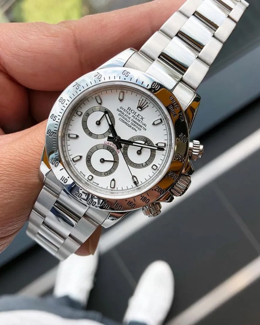 Rolex Daytona из нержавеющей стали – одни из немногих часов, на которые существует длинный лист ожидания: с легкостью до года или двух, и это при условии, что продавец знает вас, вы записались в день выпуска и ваше второе имя – «счастливчик».