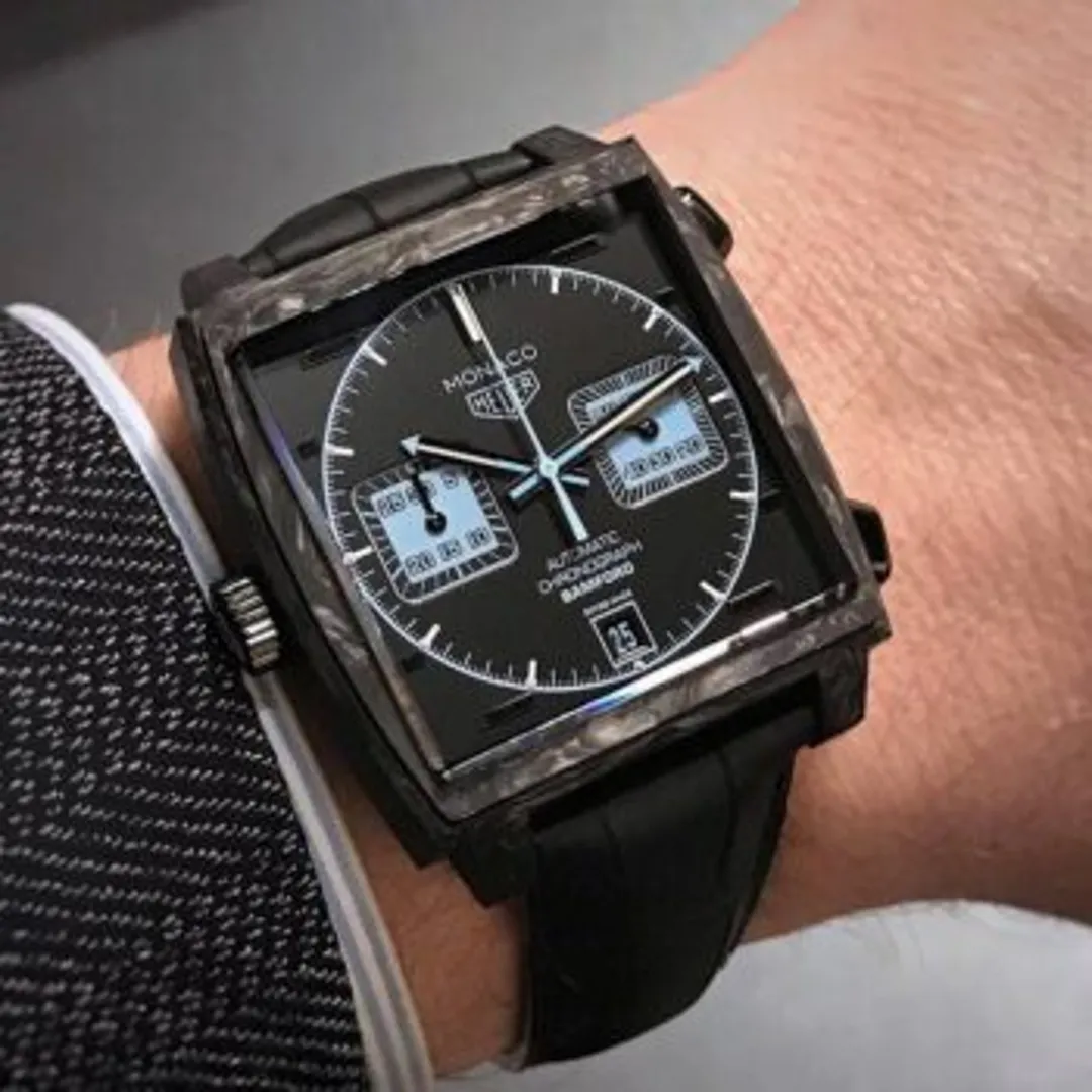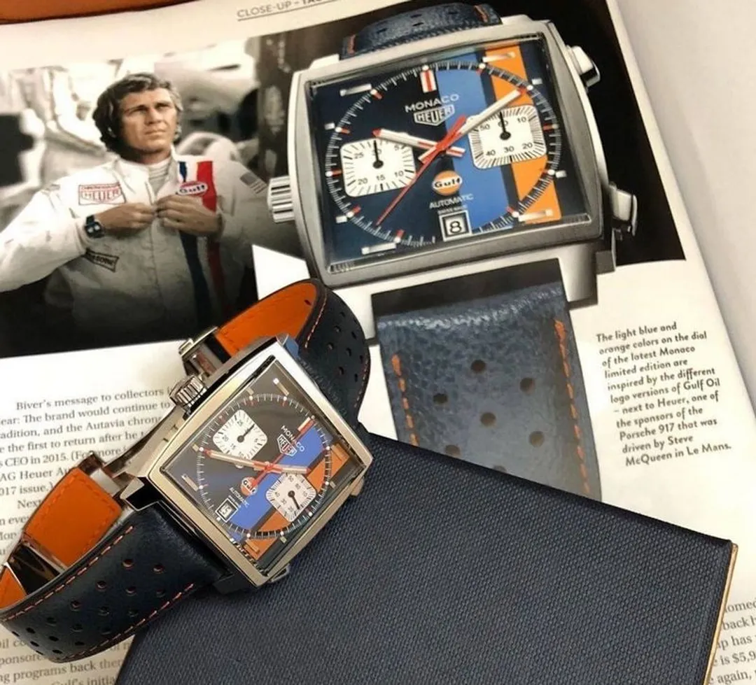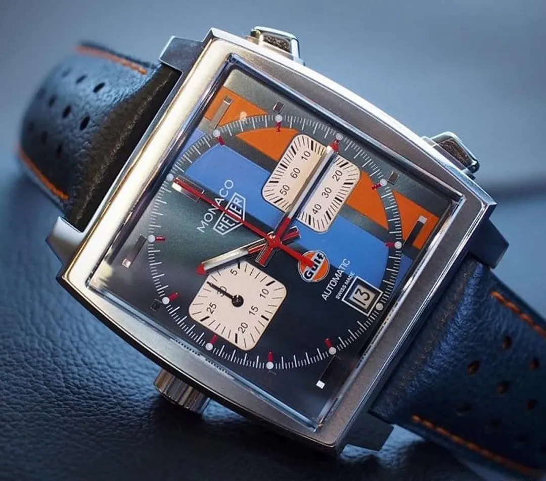 Название и происхождение часов Monaco намекают на то, что это спортивные часы и их следует носить только по выходным, когда костюм сброшен и надеты водительские перчатки. Однако именно квадратный корпус дает им преимущество перед остальными часами, вдохновленными автомоделями, поскольку такая форма придает им элегантность парадных часов.