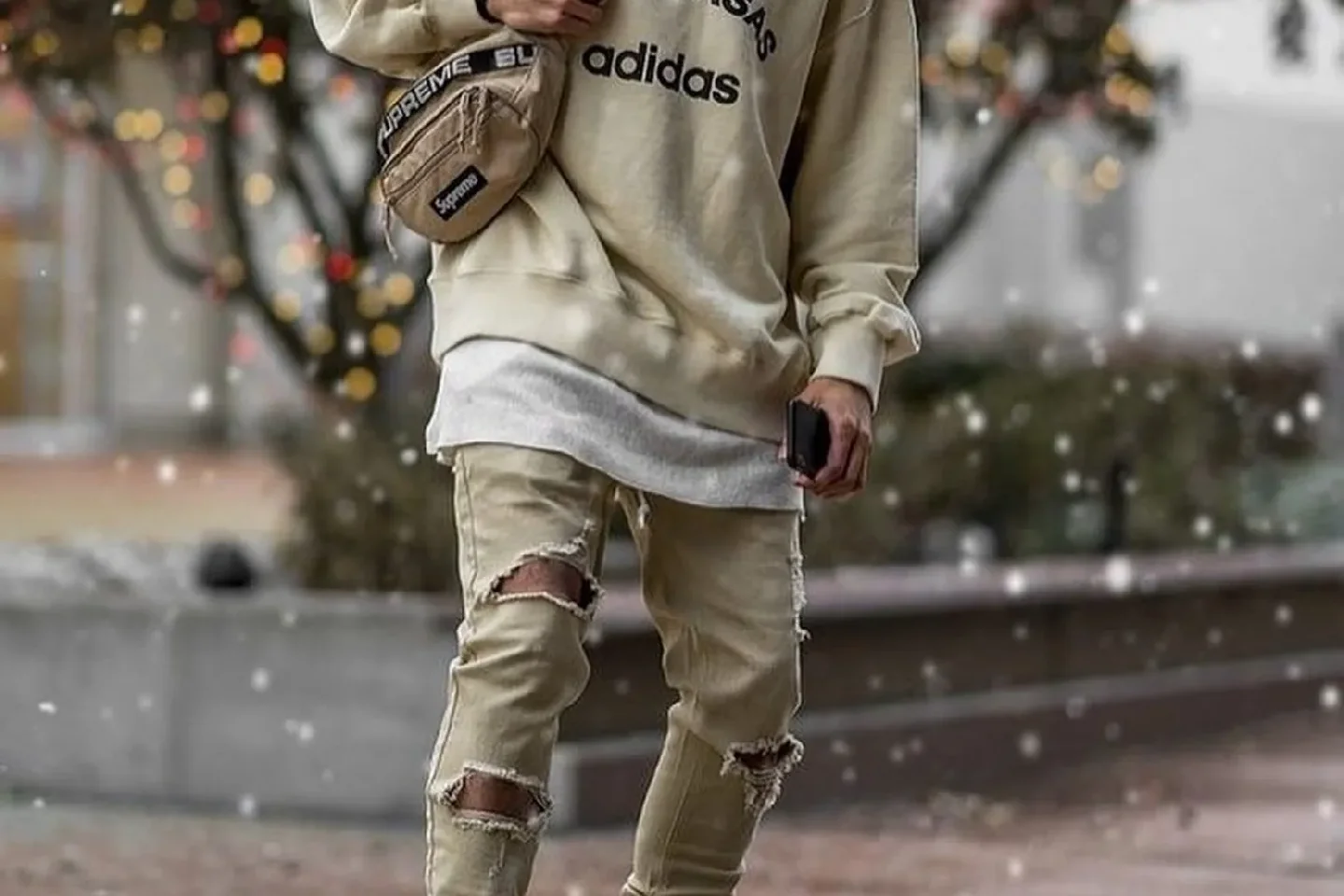Суть уличной моды – свободная толстовка с принтом, состоящим из названия города. Ее часто носили в спортивном стиле с синими джинсами и кроссовками.