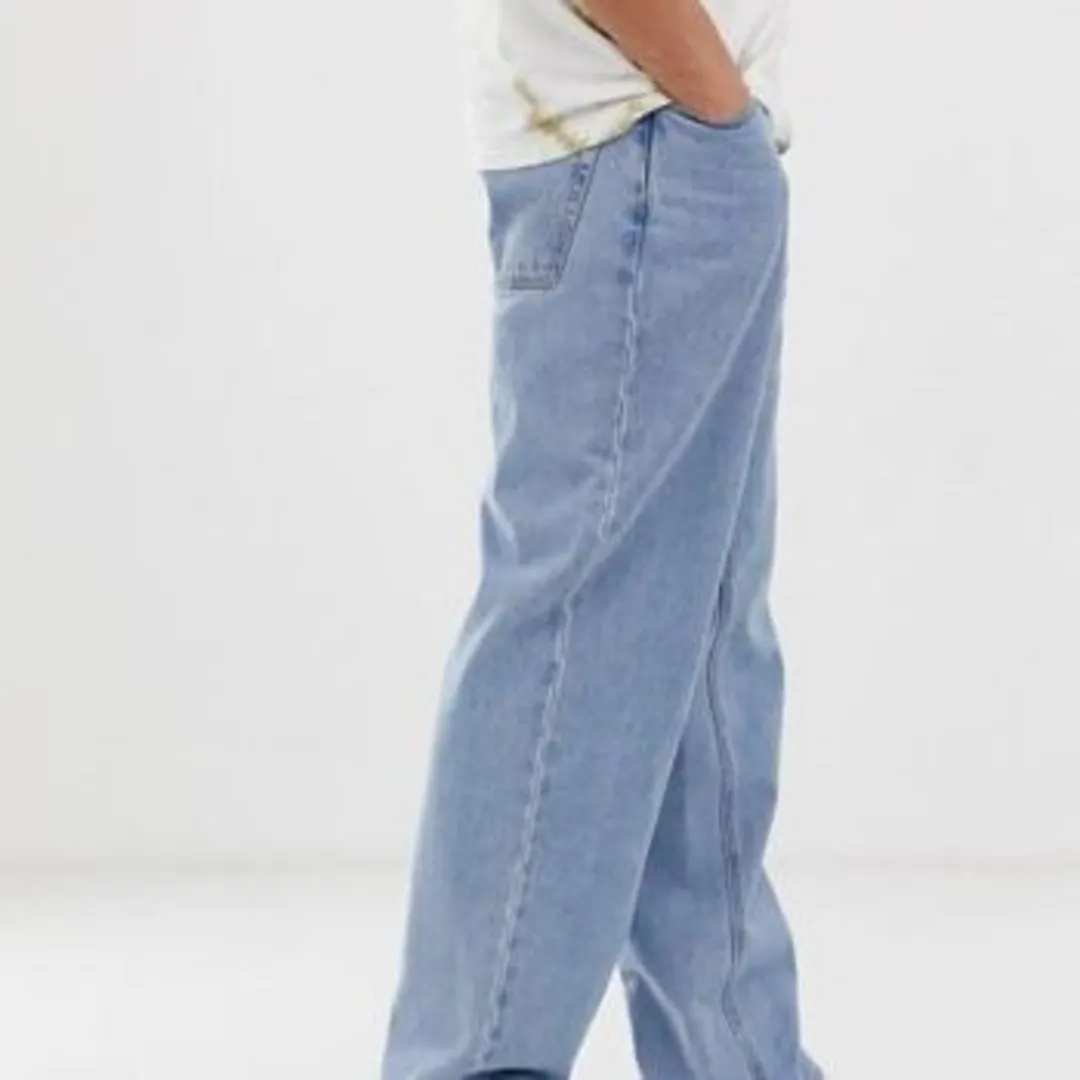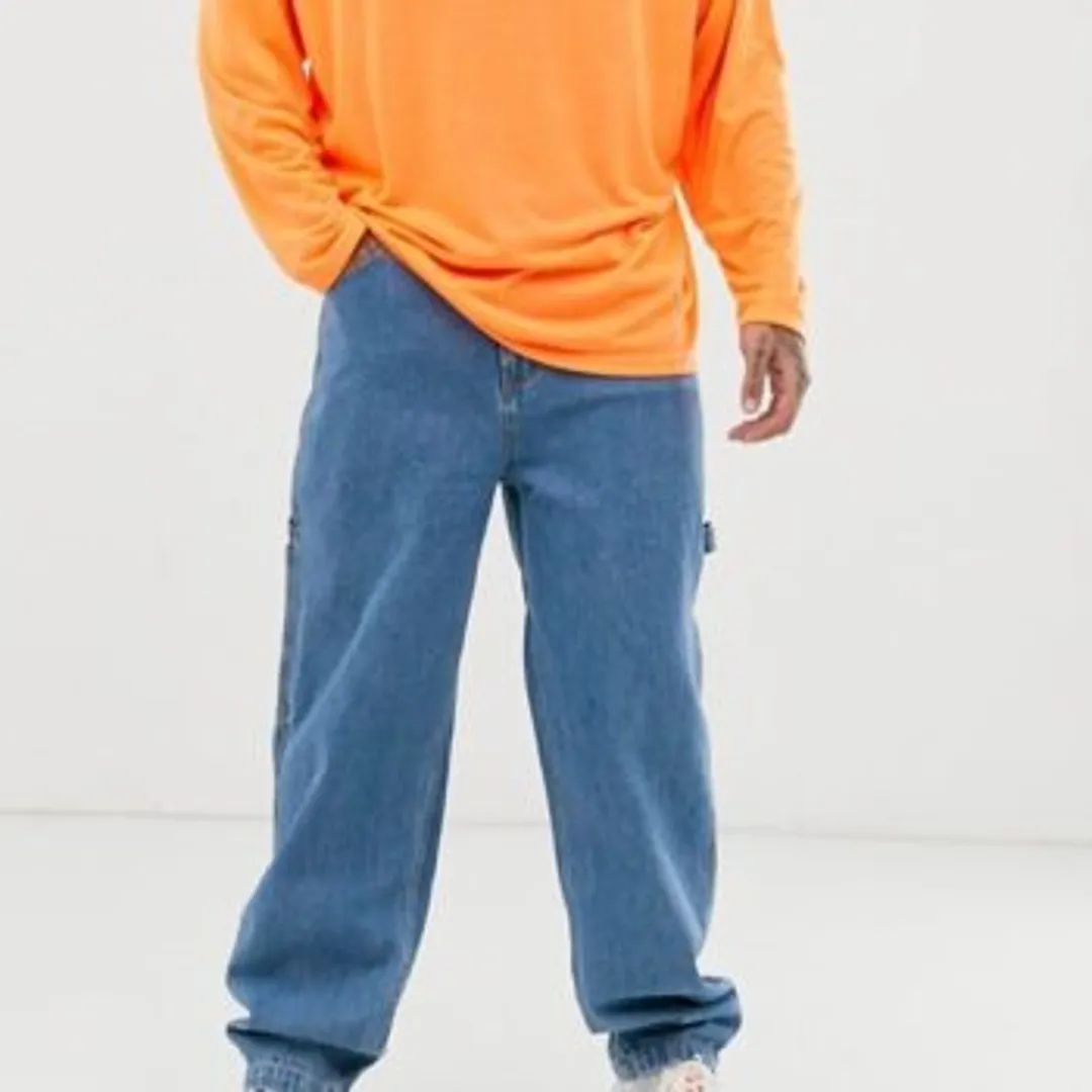 Мешковатые джинсы-трубы стали настоящей квинтэссенцией уличной одежды и носились на нижней части бедер.