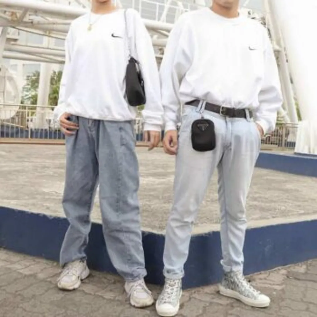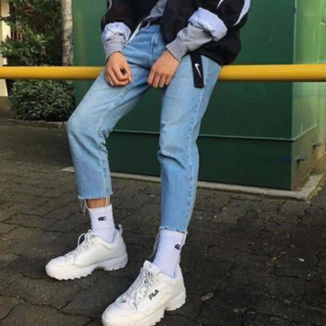 В то время джинсы были целой «религией». Если у вас не было пары синих широких прямых джинсов – вы однозначно были не в тренде. Их часто сочетали с толстовками ярких цветов и белыми высокими кроссовками.
