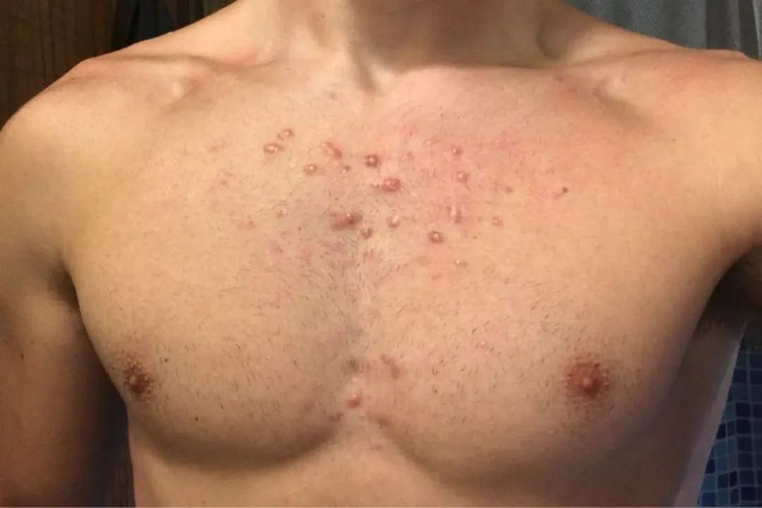Если вы обнаружили прыщи в зоне грудной клетки и принимаете добавки из сывороточного протеина или стероиды для увеличения массы тела, у вас может быть еще один вердикт. Сыворотка повышает уровень инсулина в коже (как сахар), что приводит к воспалению. Стороны, стероиды, значительно влияют на уровень тестостерона, который, в свою очередь, производит избыток кожного сала в порах и может быстро их забить.