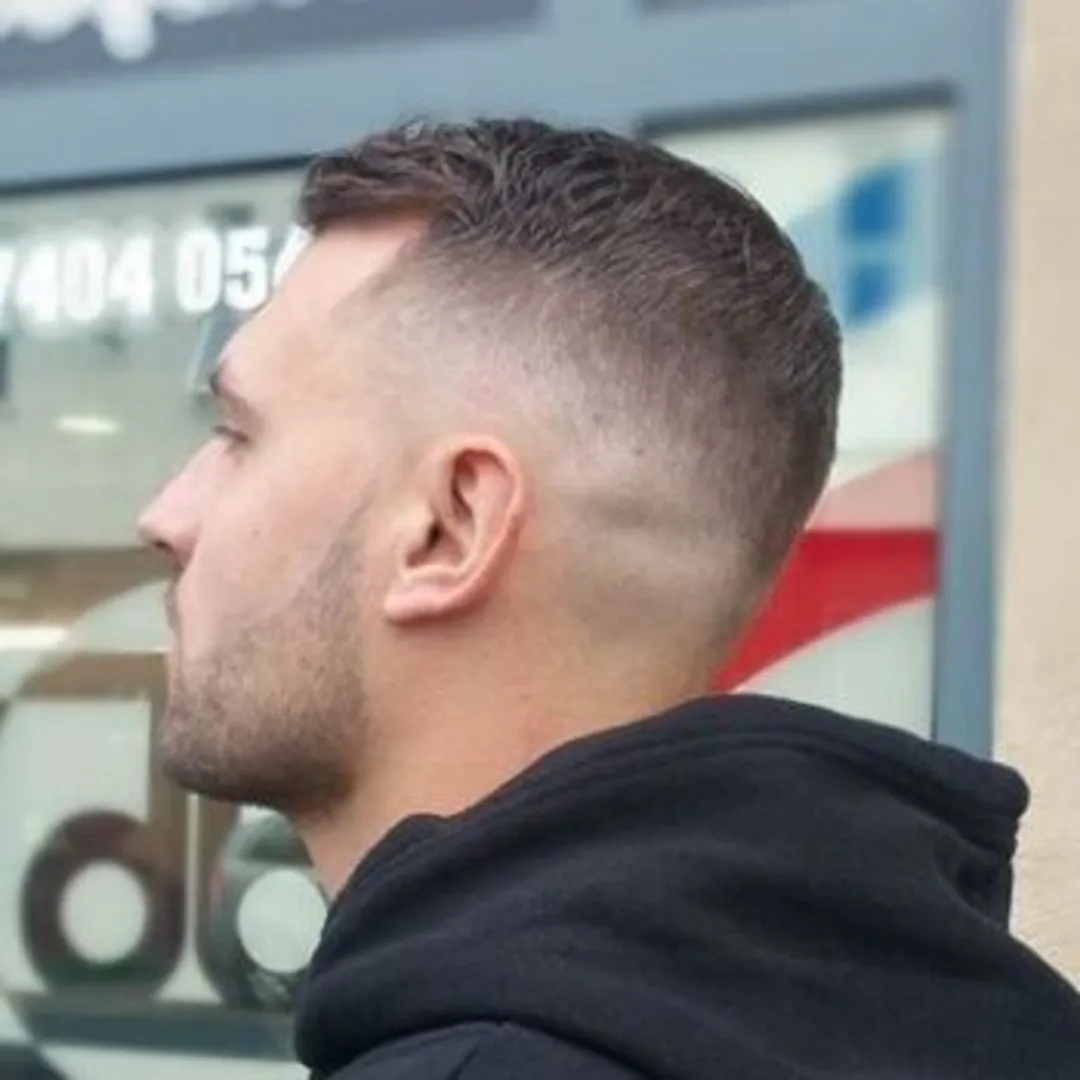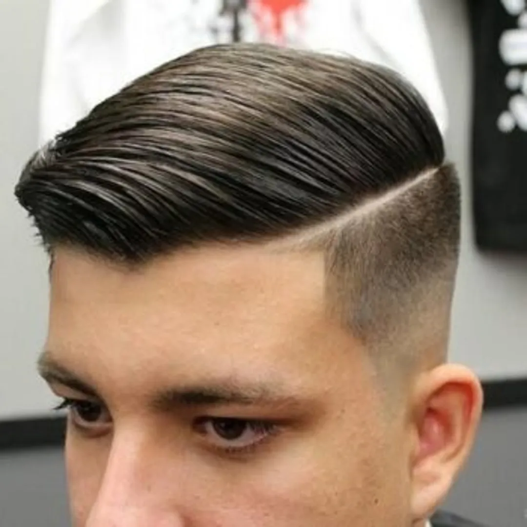 Гвардейская стрижка похожа на полубокс, но разница заключается в том, что волосы достаточно длинные на макушке для укладки с боковым пробором, в то время как остальные короче с боковой стороны.