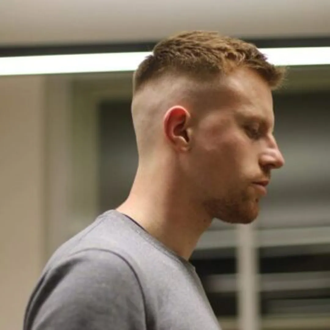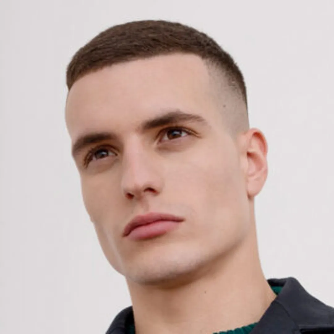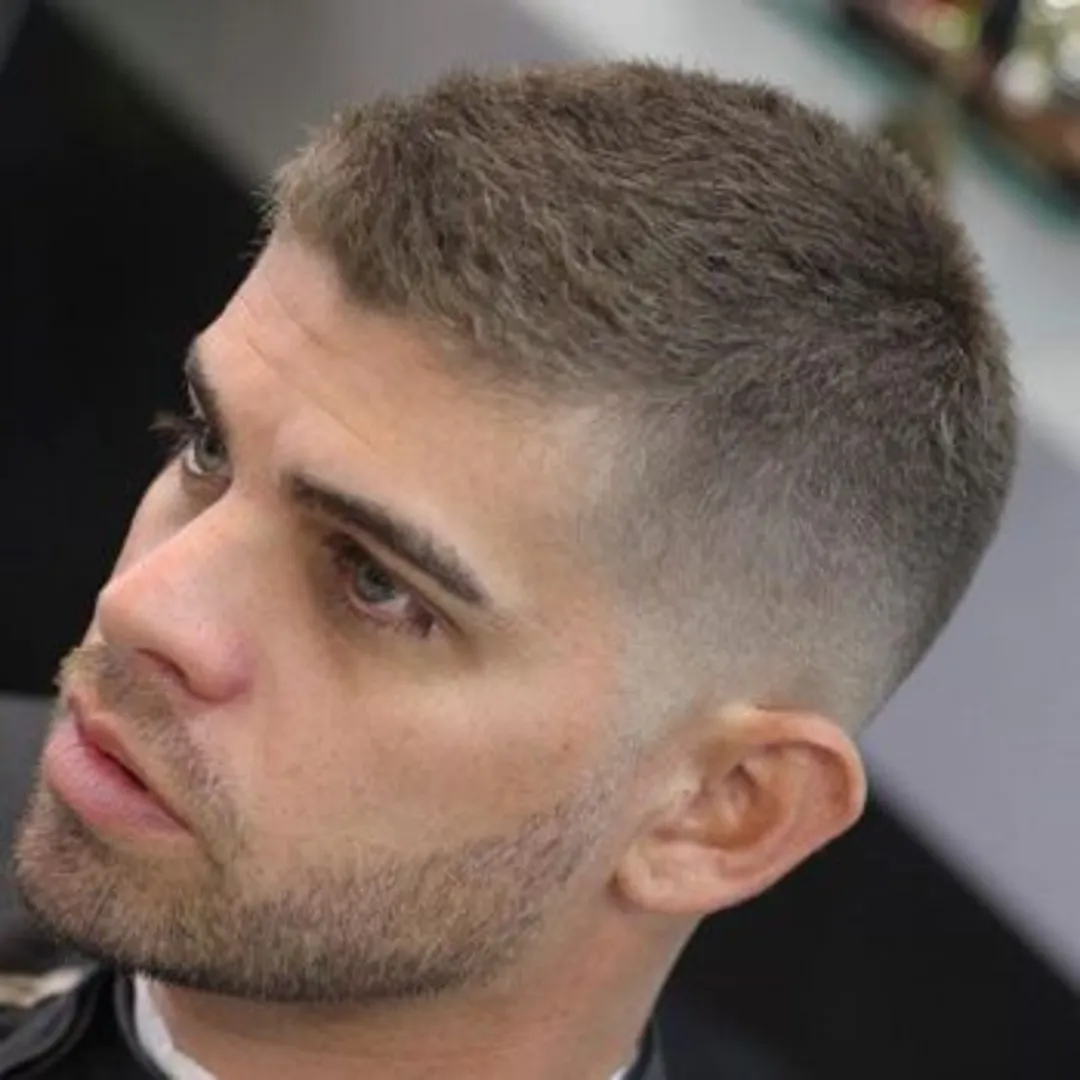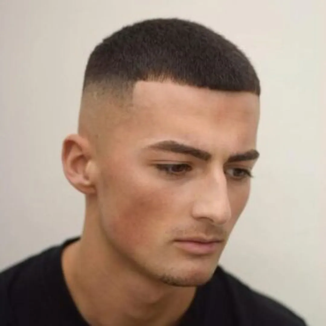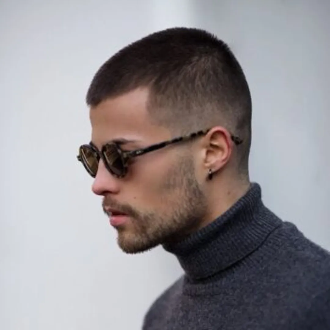 Супер короткие, одинаковой длины на всей территории головы, чистые (без окраса), не требующие стайлинга волосы и отличный вариант для парней, которые худеют. Аккуратный внешний вид и отсутствие суеты сделали этот выбор популярным среди военнослужащих, но также это отличный стиль и для нас, гражданских лиц.
