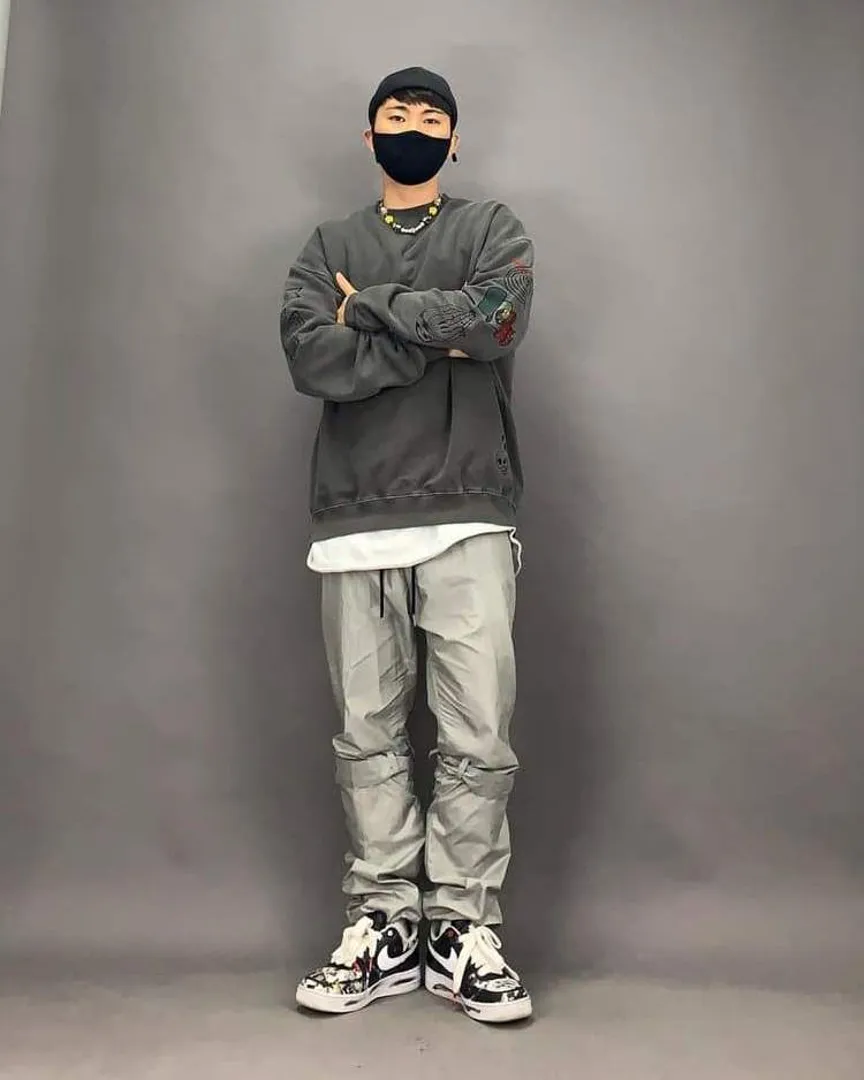 Они создают элегантный образ, сочетая свои маски с классическим стилем K-Pop, таким как широкие брюки и куртки, бейсболки и рваные джинсы.