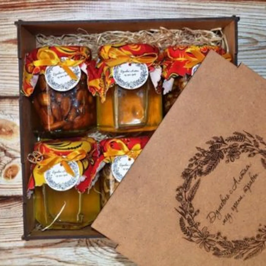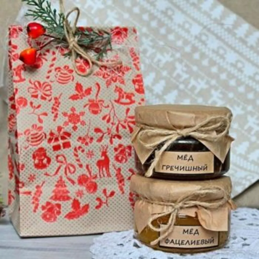 Набор меда — перед новогодними праздниками часто продаются такие наборы в новогоднем дизайне. При необходимости всегда можно купить обычный мед и украсить его еловой веткой или елочными мини-игрушками. Покупки рекомендуется делать в специализированном магазине, что поможет приобрести качественные товары.