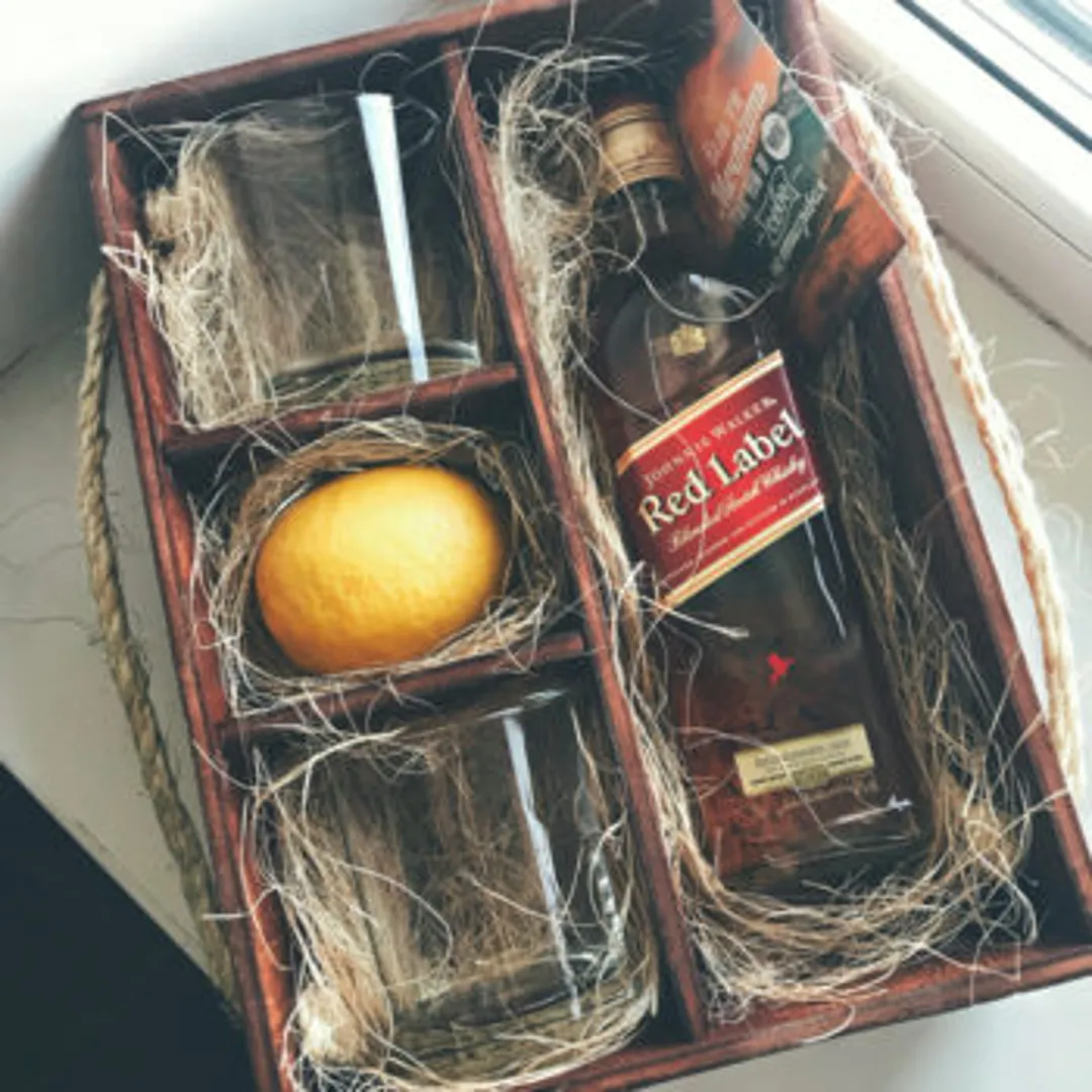 Хороший алкоголь — виски, вино или коньяк в необычном футляре порадует коллегу вне зависимости от пола.