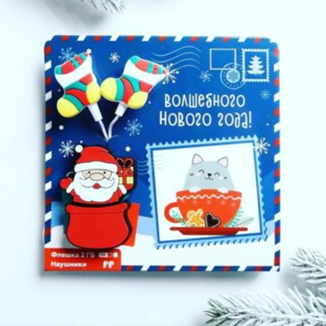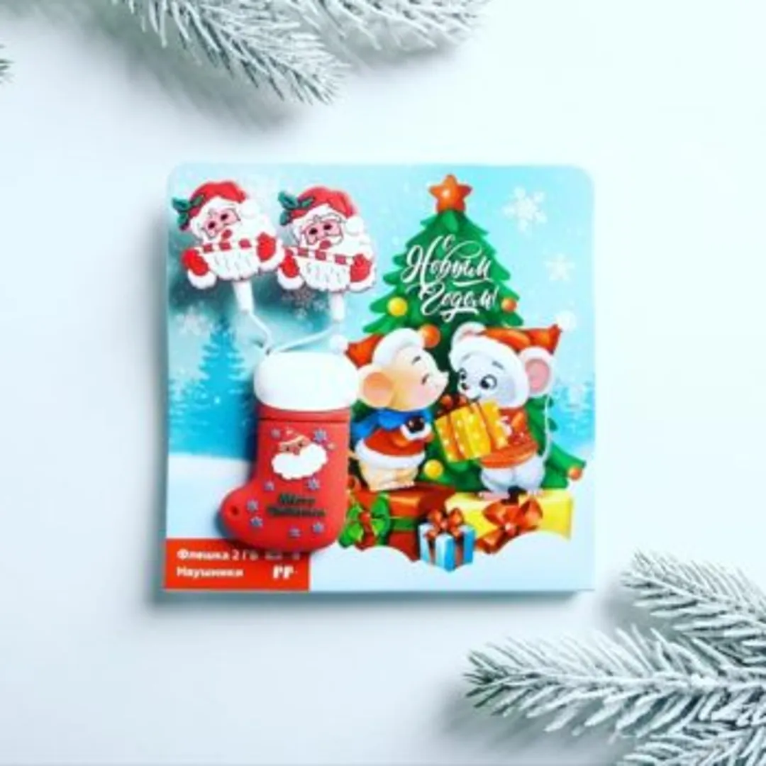 Флешка — предпочтение следует отдавать выполненным в праздничном дизайне моделям (Ель, Санта-Клаус).