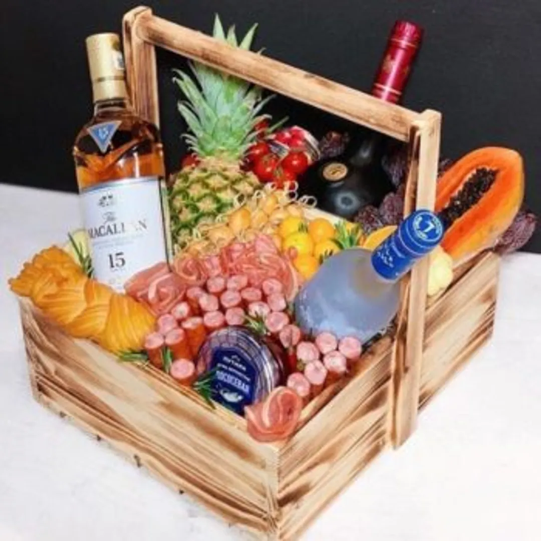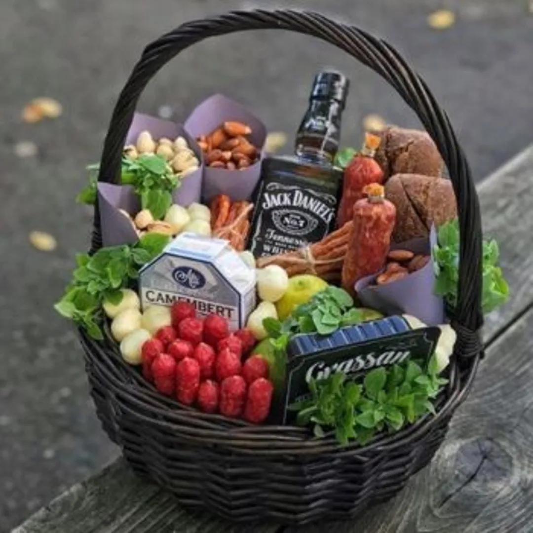 корзина с разными видами мяса, колбас — станет отличным дополнением любого праздника;
