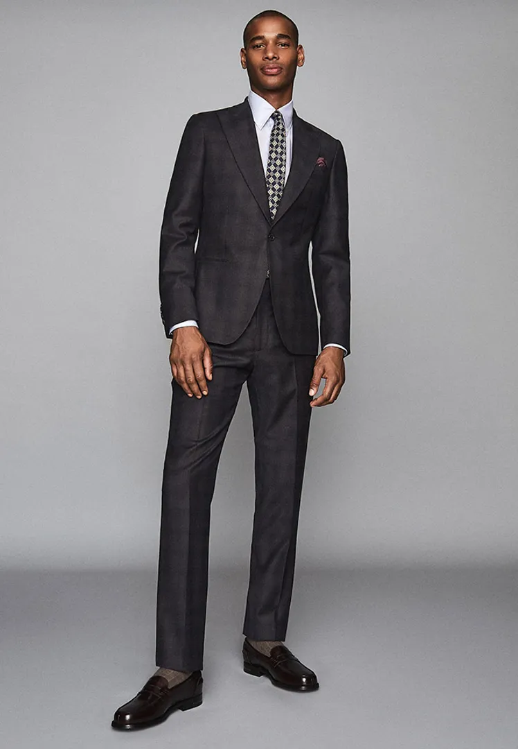 Что касается обуви, черный Дерби или Оксфорд всегда будут безопасным выбором. Однако, если вы любите систематически поднимать уровень, почему бы не попробовать вместо этого двойной пряжкой? Замша и кожа одинаково приемлемы, просто следите за погодой, если вы идете первым.
