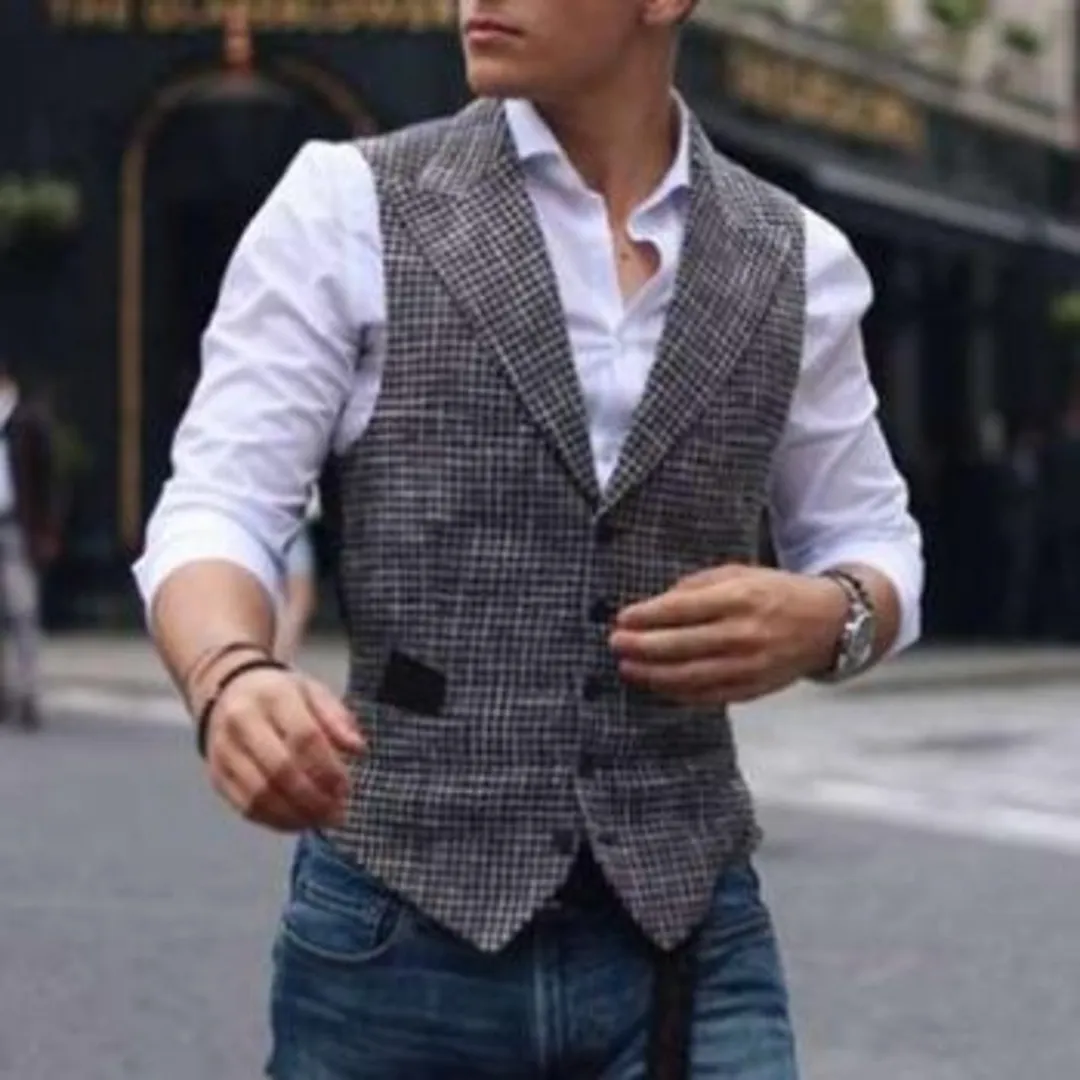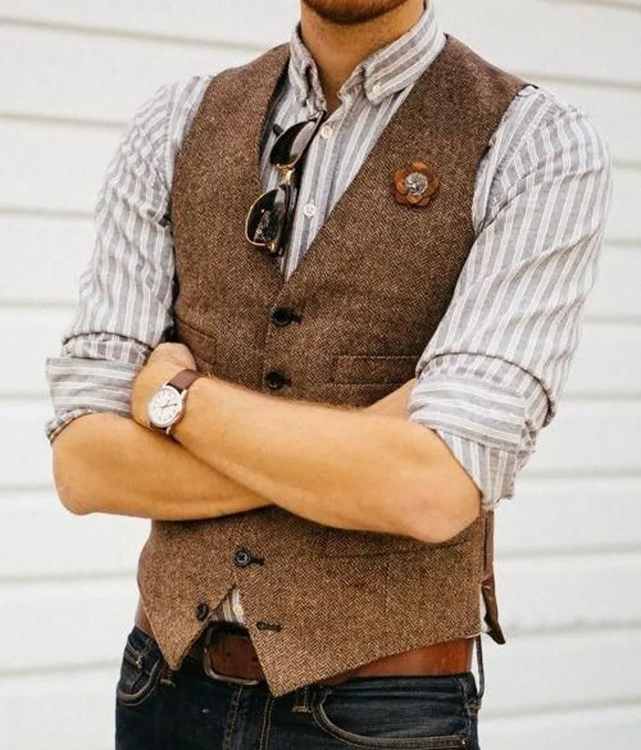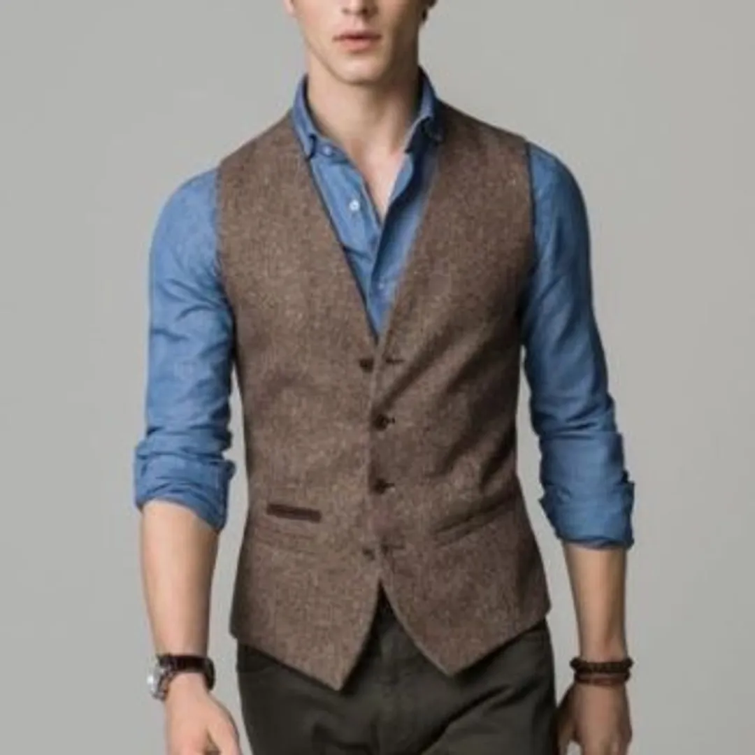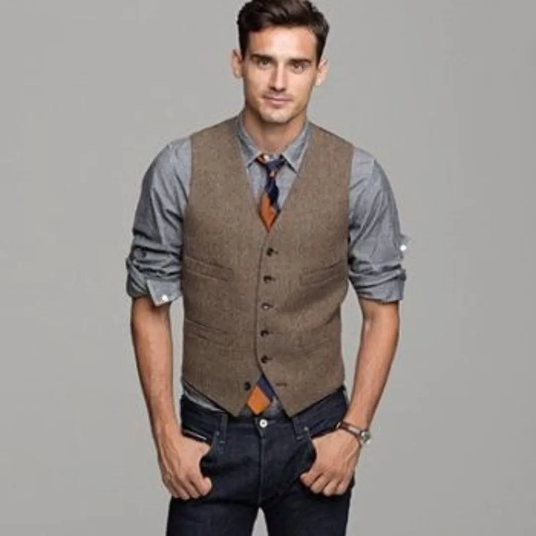 Не нужно относиться к жилету только как к формальной вещи в своем гардеробе. Жилет, который можно носить отдельно с расслабленно открытыми рубашками на шее, брюками чинос или даже джинсами, может стать отличной альтернативой блейзеру или спортивной куртке по выходным. Выберите что-нибудь из плотной ткани, такой как клетчатый твид или традиционный твид в «ёлочку», и вы обнаружите, что это отличная легкая одежда для весны и полезный утеплитель на осень.