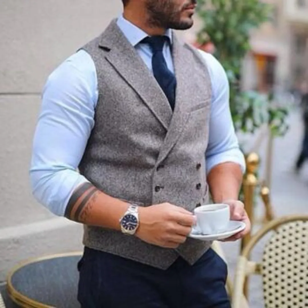 Двубортные жилеты могут показаться немного пугающими для носки, но если Вы хотите выглядеть солидно, то их ничто не заменит. В одной этой вещи кроется ключ к тому, чтобы уплотнить остальную одежду, сделать её сдержанной. Попробуйте надеть под низ простого тёмно-синего костюма двубортный жилет и для завершения образа добавьте тёмный текстурированный галстук и лёгкую белую рубашку. Это простой способ сделать так, чтобы костюм в целом лучше сидел, а не то, о чем думают многие мужчины.