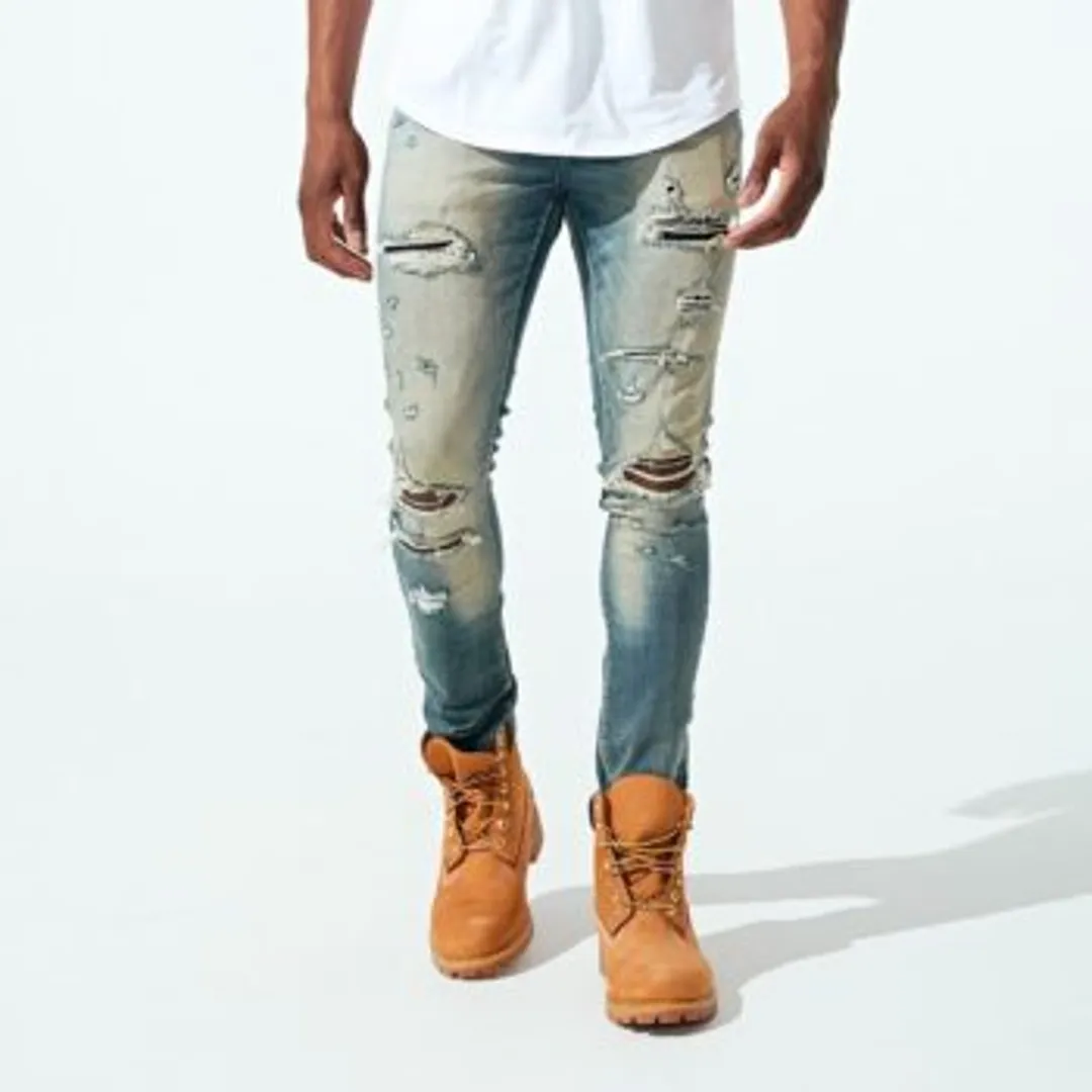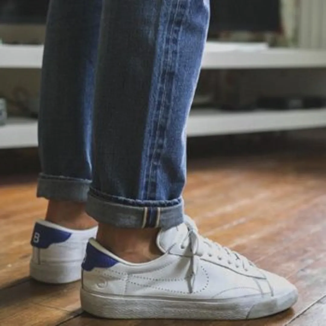 Бренд Brit усовершенствовал модель ED80 с помощью белоснежной нити для минималистского загиба ваших поворотов. И поскольку они тонкие и наслаждались семью погружениями в ванну с цветом индиго, их можно носить где угодно. Попробуйте носить их на работе с белоснежной рубашкой и обувью дерби. По выходным носить их подвернутыми с низкими кедами и джемпером — это легкий, неподвластный времени образ.