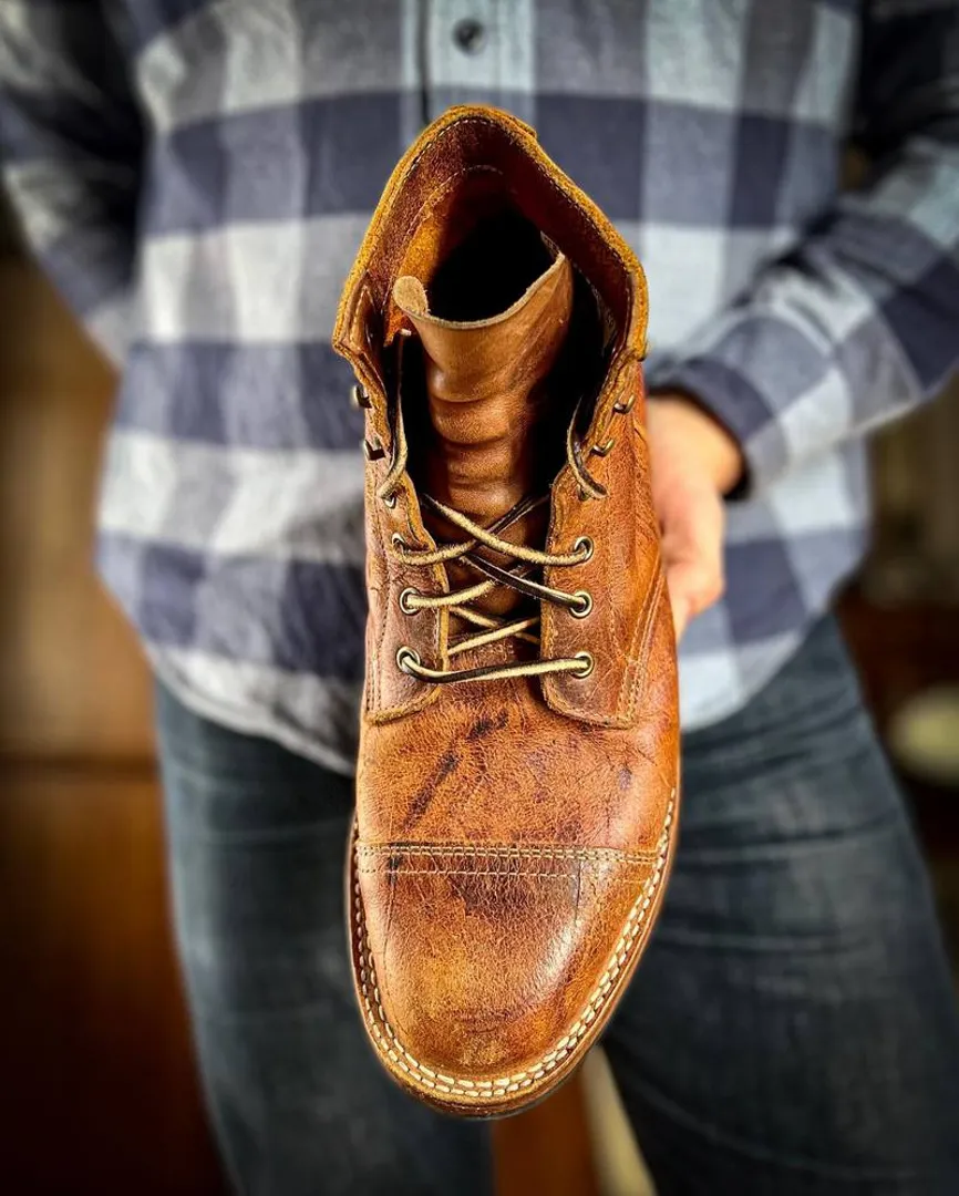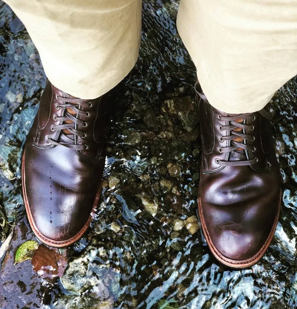 Очень важно, чтобы обувь была всегда чистой. Если кожа ваших ботинок чрезмерно намокнет, а затем высохнет или покроется грязью, она может деформироваться. Чтобы предотвратить усадку и шелушение кожи, необходимо следить за тем, чтобы ботинки были чистыми и имели доступ к свежему воздуху. Если вы храните их в жарких помещениях, кожа в конечном итоге высохнет.